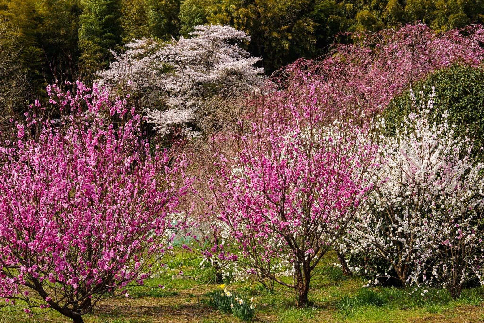 ここに写っている桃は普通の桃でしたね。この右側に枝垂れ桃が十数本あります。