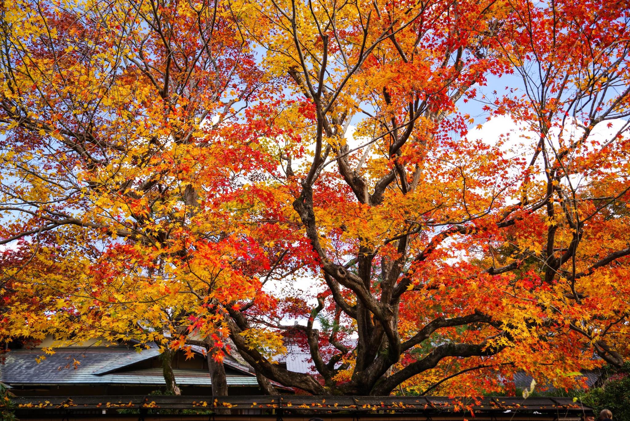 下の屋根に落ちた色づいた落ち葉もとても良いポイントで京都の風情です。