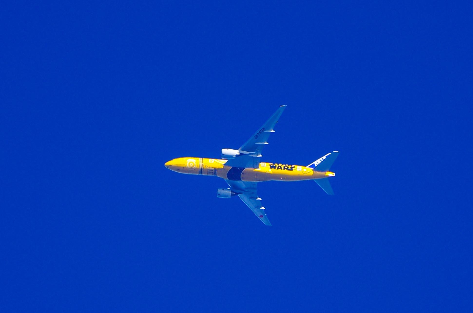 遠めでも黄色く見えたので撮ってみたら、STAR Warsのラッピング機でした。
