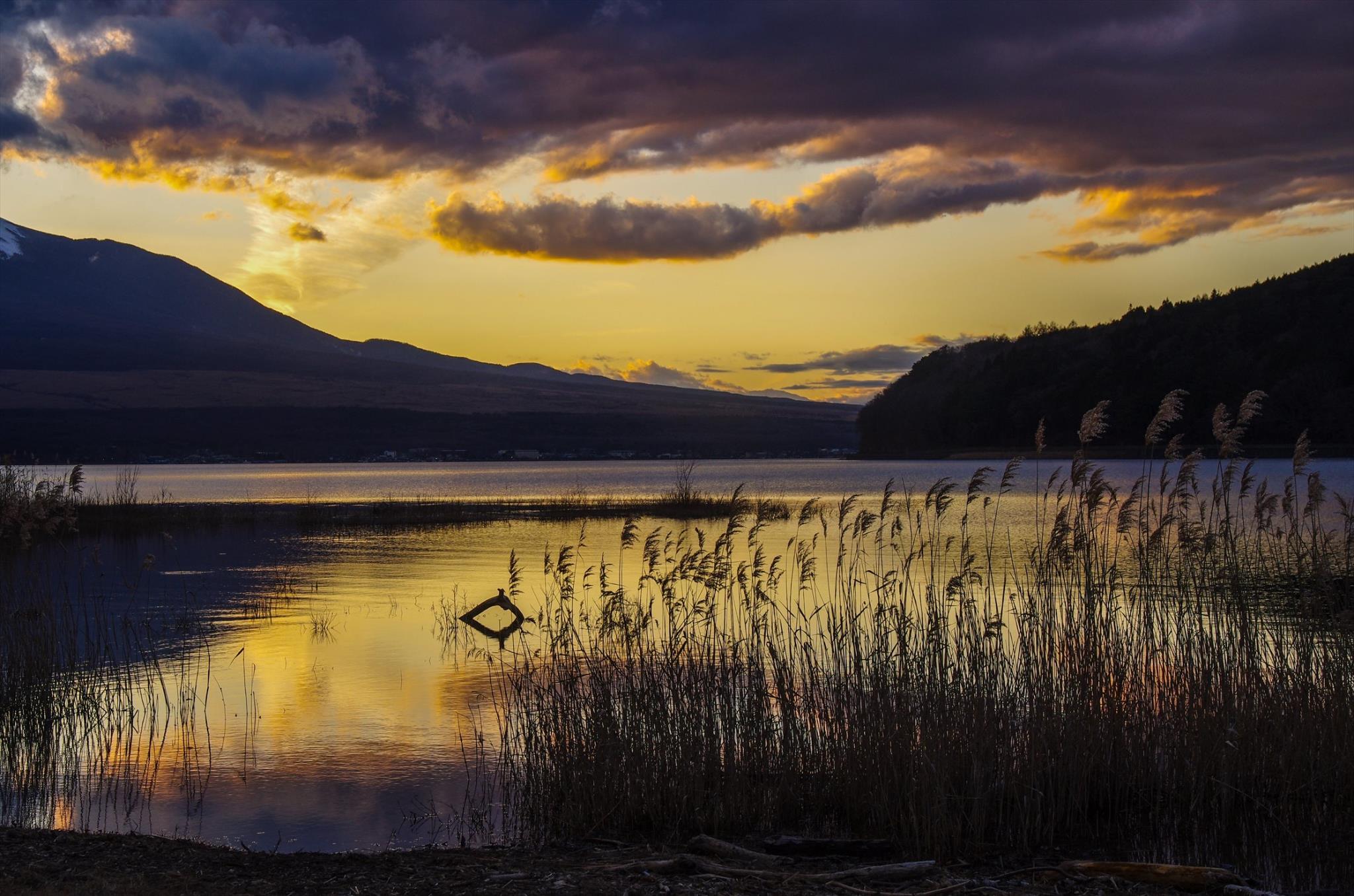 富士山は雲の中だったので、夕暮れの景色を探しました。なんだか寂しそうな色合いですが・・