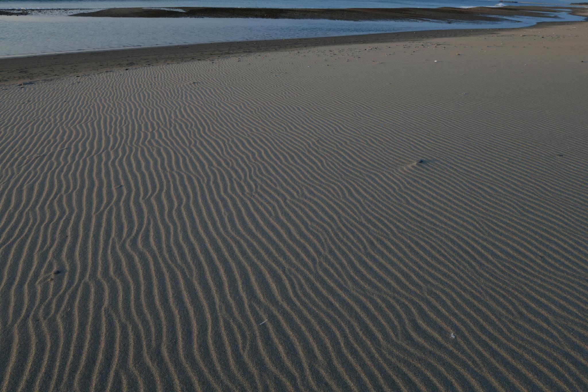 足跡がないこんな綺麗な波紋の砂浜に出会う機会はそうざらにないでしょうね。