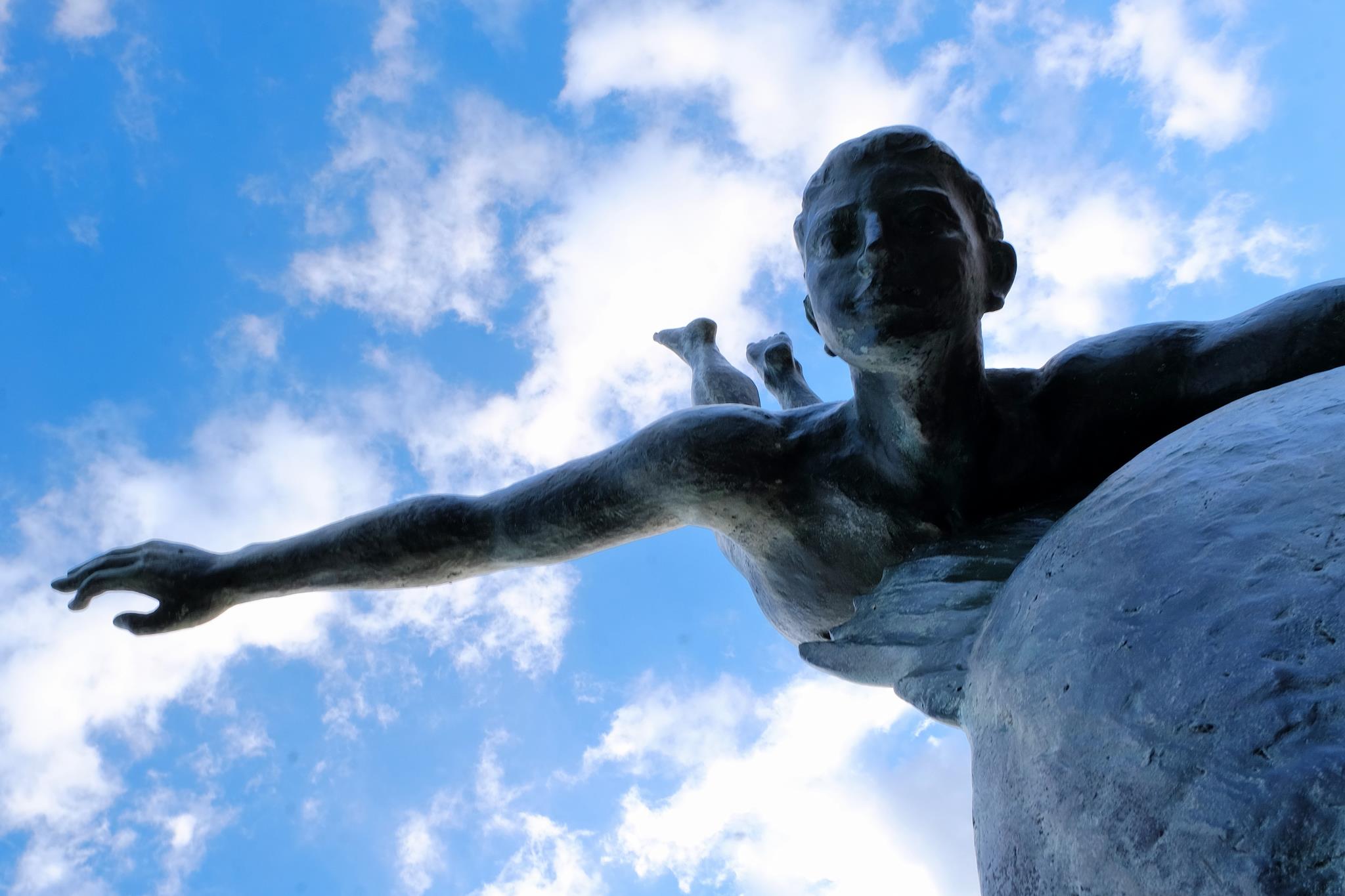絞りf22で銅像(石造?)と雲の両方にピントを持って行こうと考えられたのでしょうが、この場合広角で撮っていますのでf11~16で十分被写界深度は得られます。