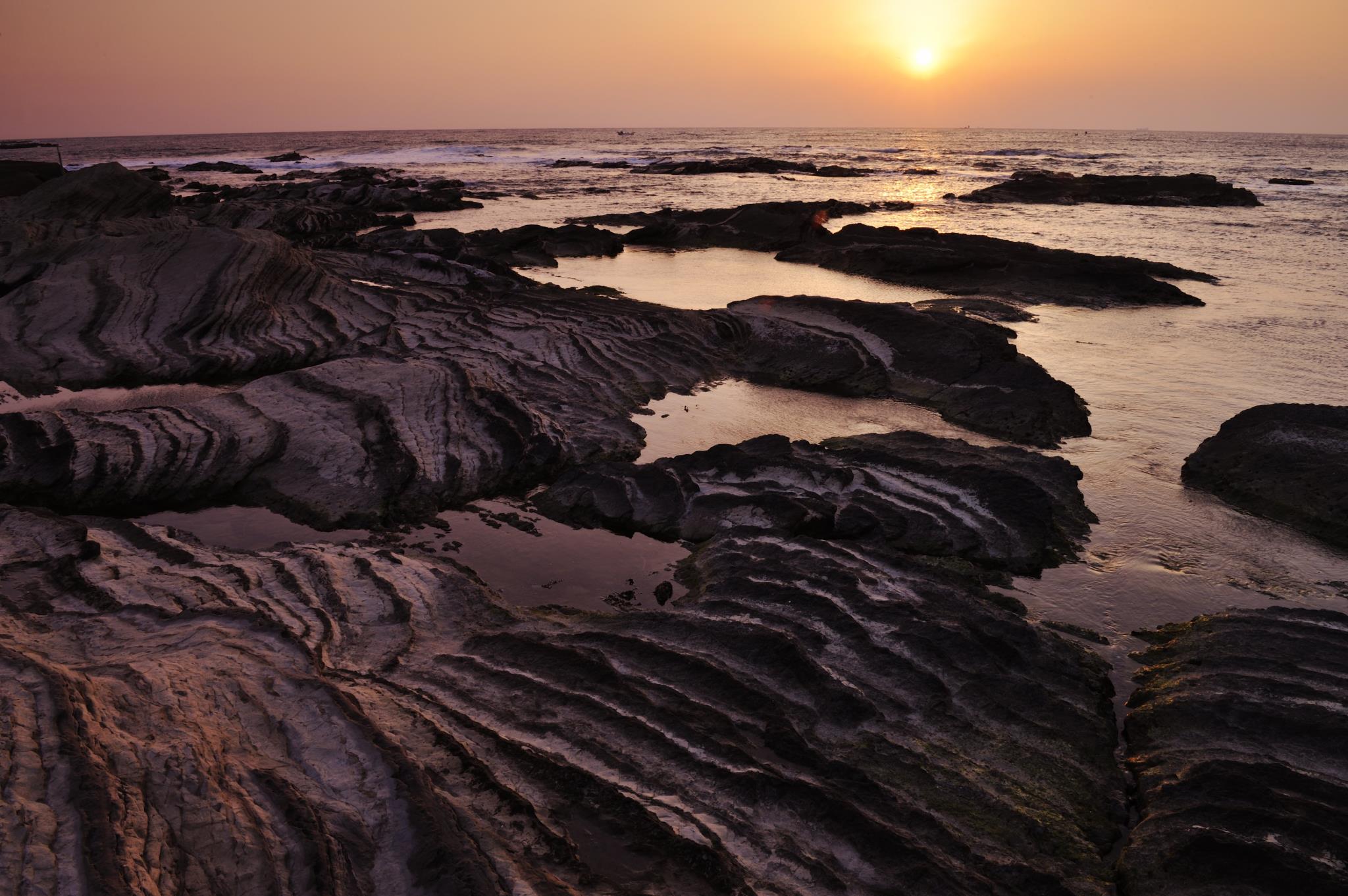 房総三日目の朝です。ここは千倉・七浦漁港の前の岩礁です。