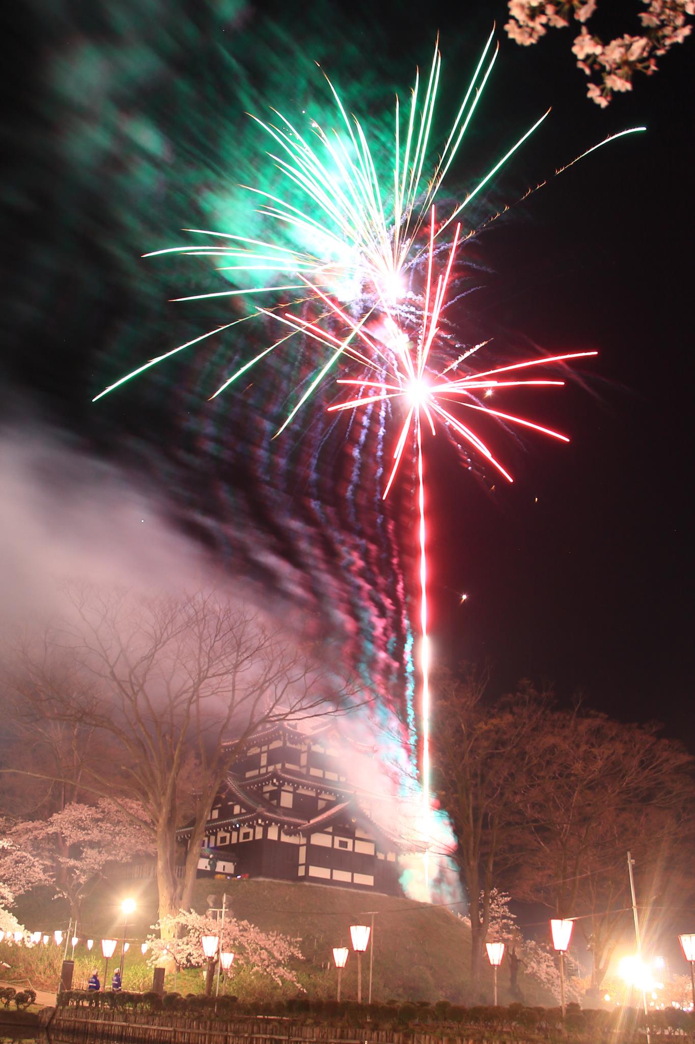 お城の付近での打ち上げ花火ですので大きなものは上げられません。