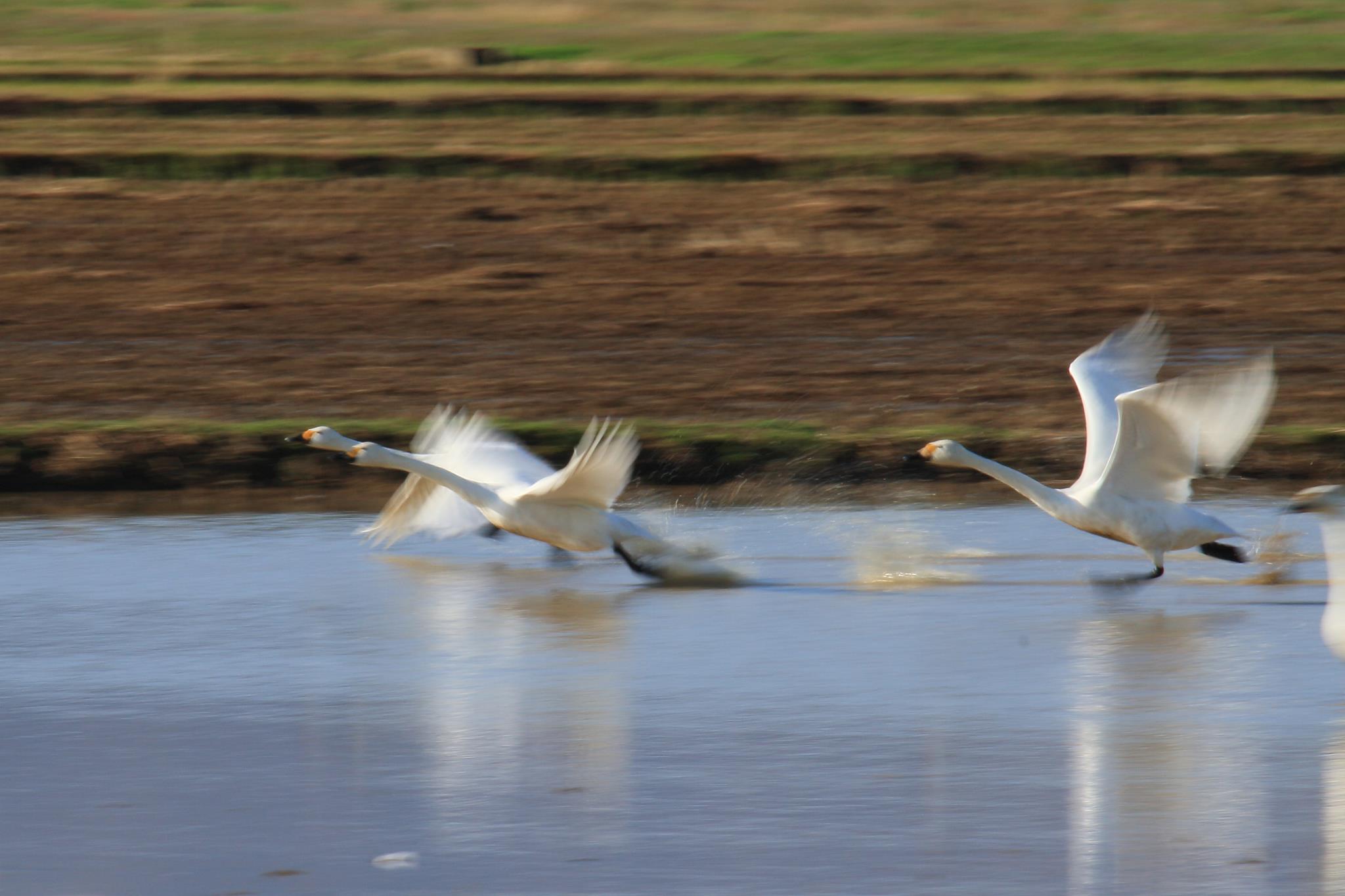 大型の鳥は助走をつけなければ離陸することは出来ないようです。まるで飛行機が離陸する時の様です。数羽が一斉に飛び立つ時は迫力があります。