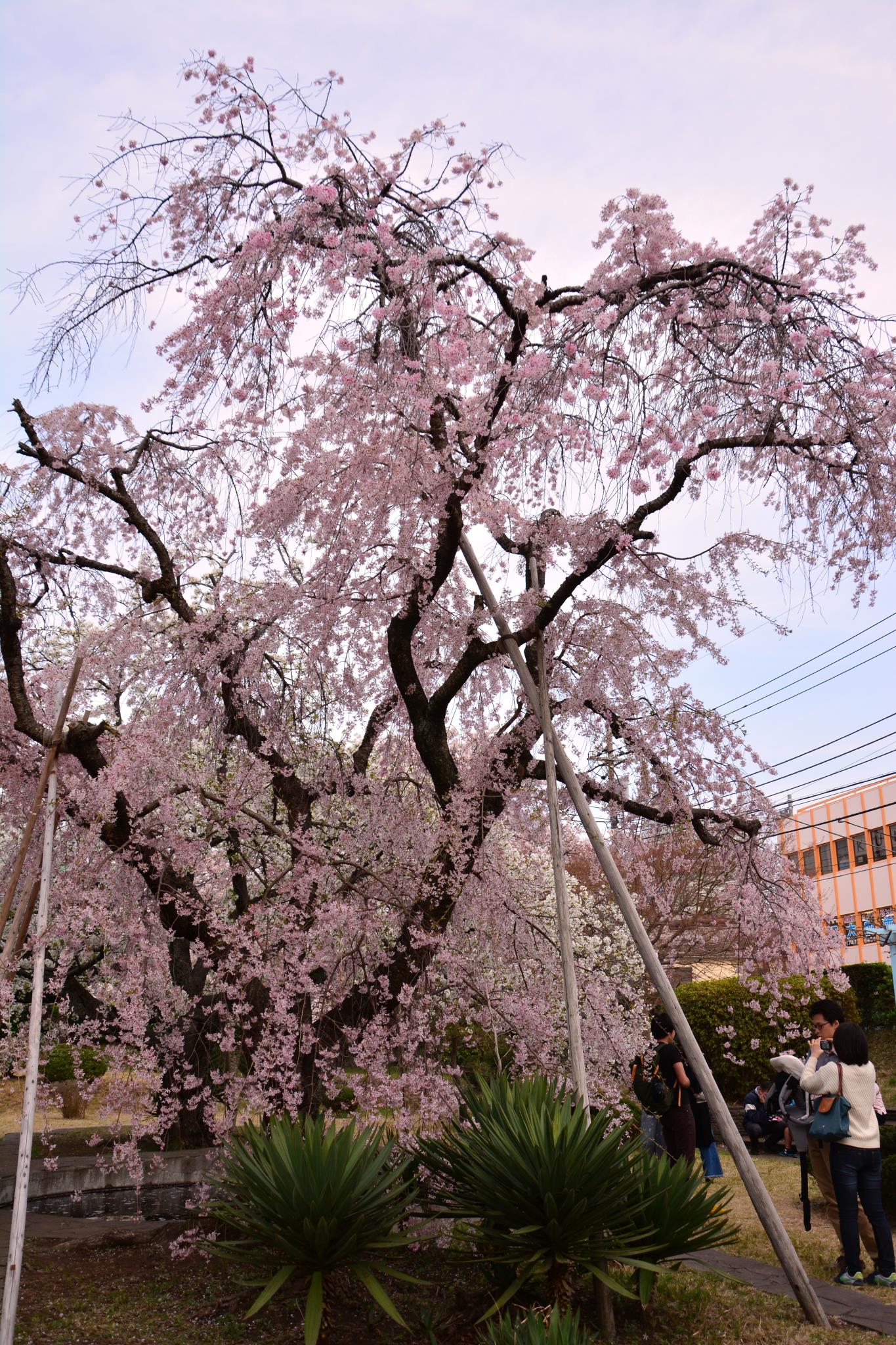 この枝垂桜、可憐なピンク色で人気を集めています。