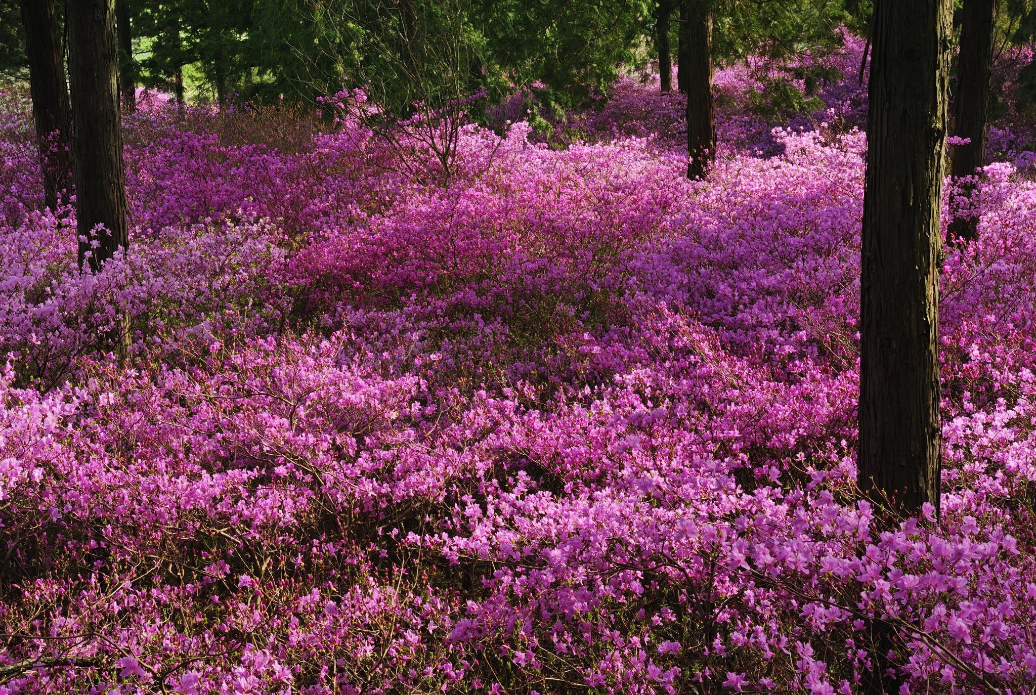 ツツジの絨毯の様。岩谷時子作詩、君といつまでものフレーズ『しとね』のイメージです。