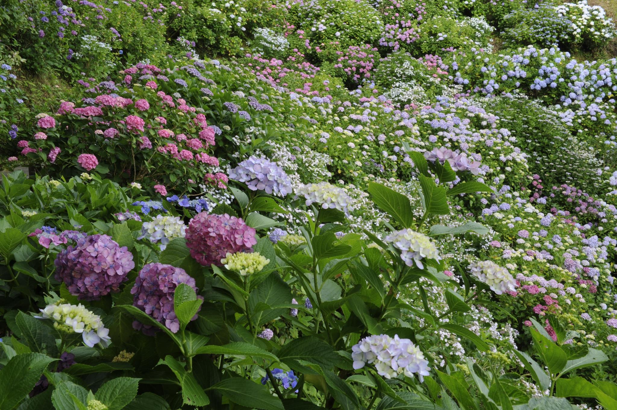 15万株にも驚きますが、この紫陽花の多色さは他では見られません。