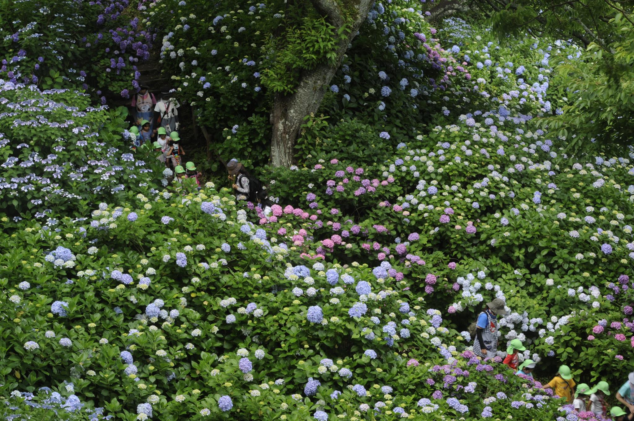 15万株のアジサイの群落の中に園児が、かわいらしく歩いているのを、動画で見せていただきました。ありがとうございました