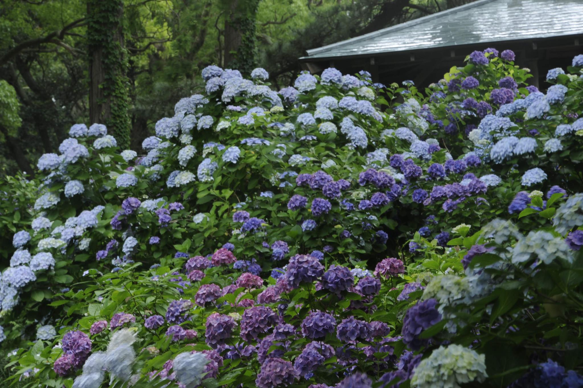 東屋は紫陽花にも似合いますね。