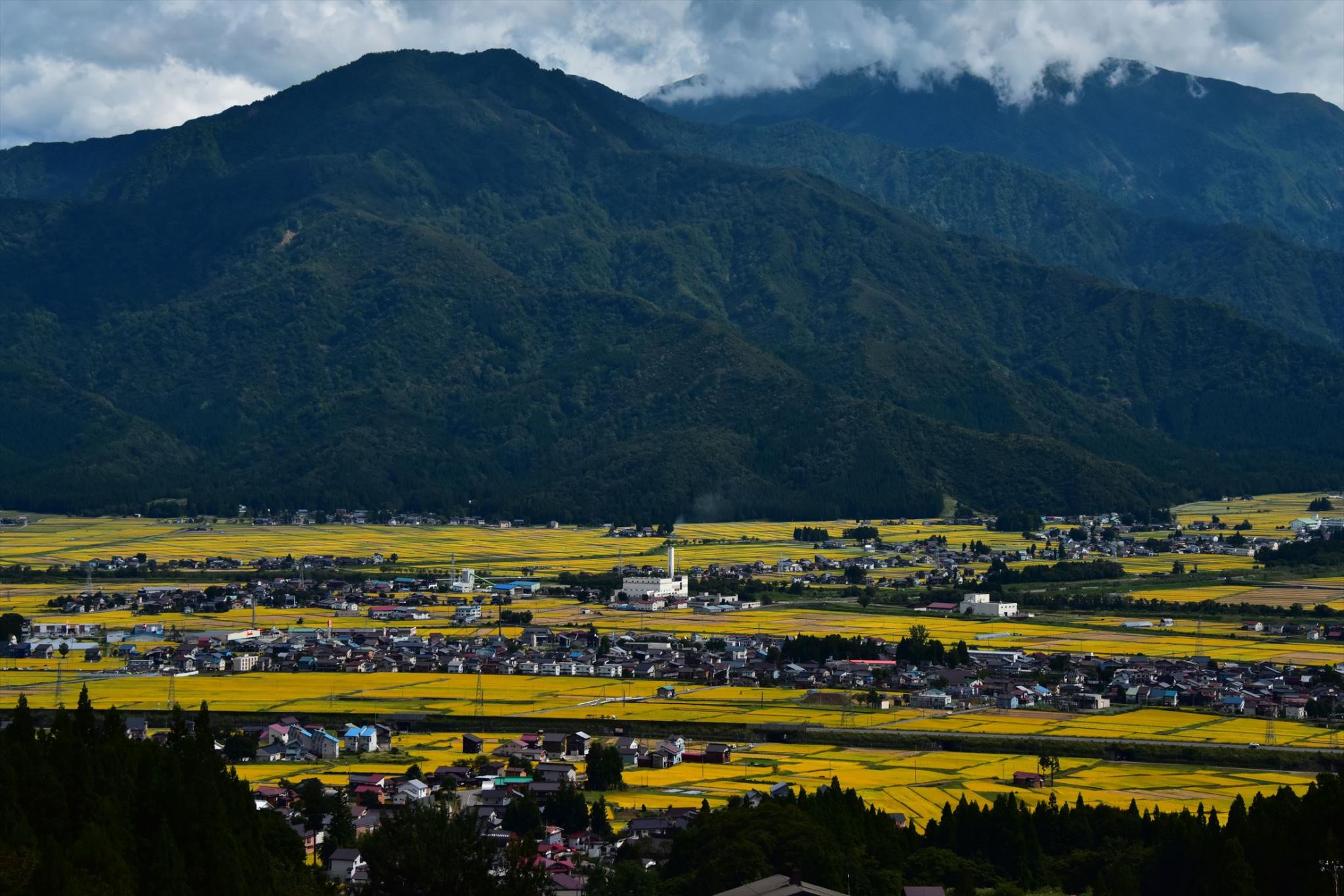 小高いところから見渡すポイントがあり、家々が田んぼの中に建っているのが見えました。