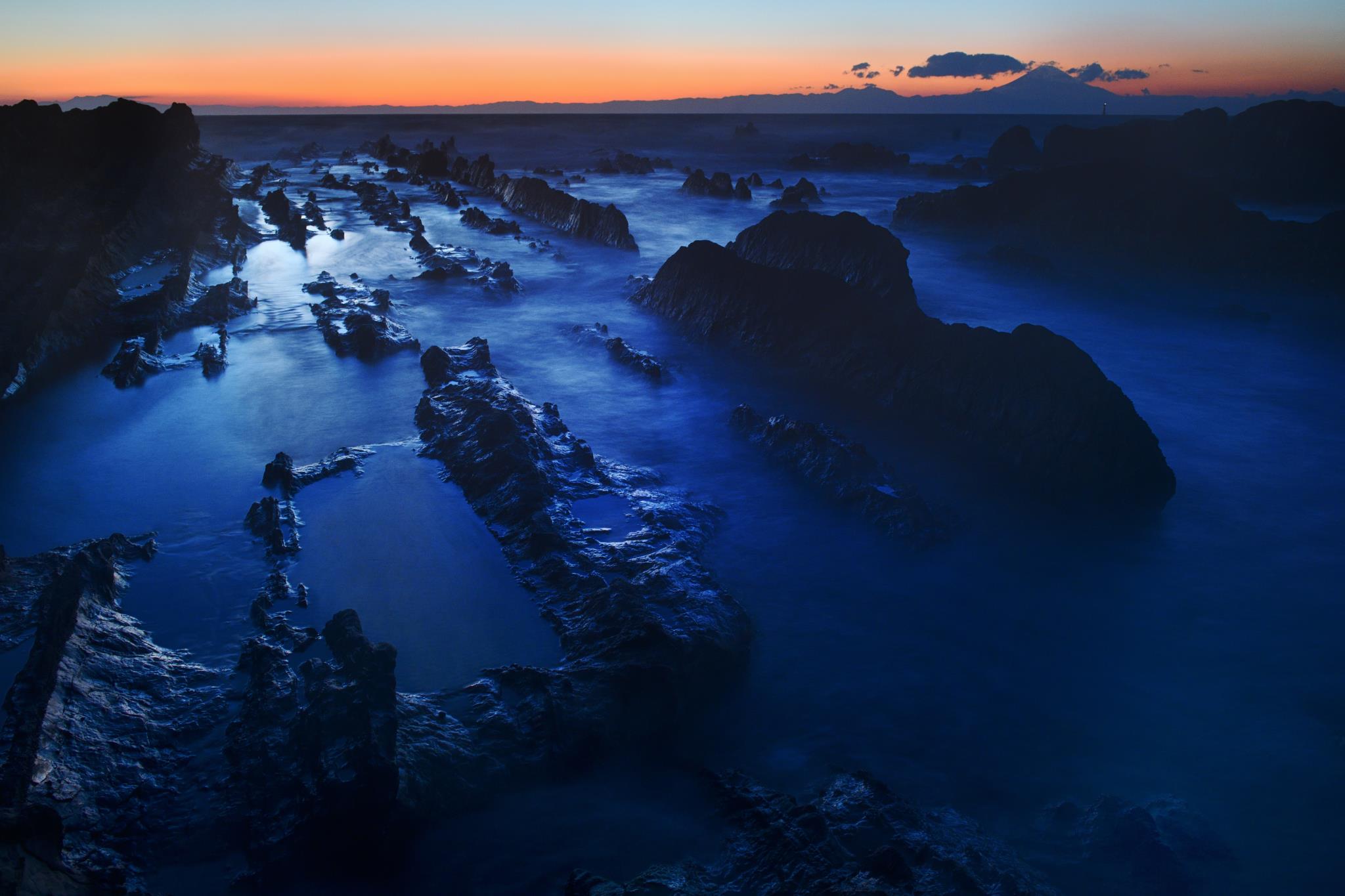 ブルーアワーの中に富士を遠景にこの日最後のショットです。