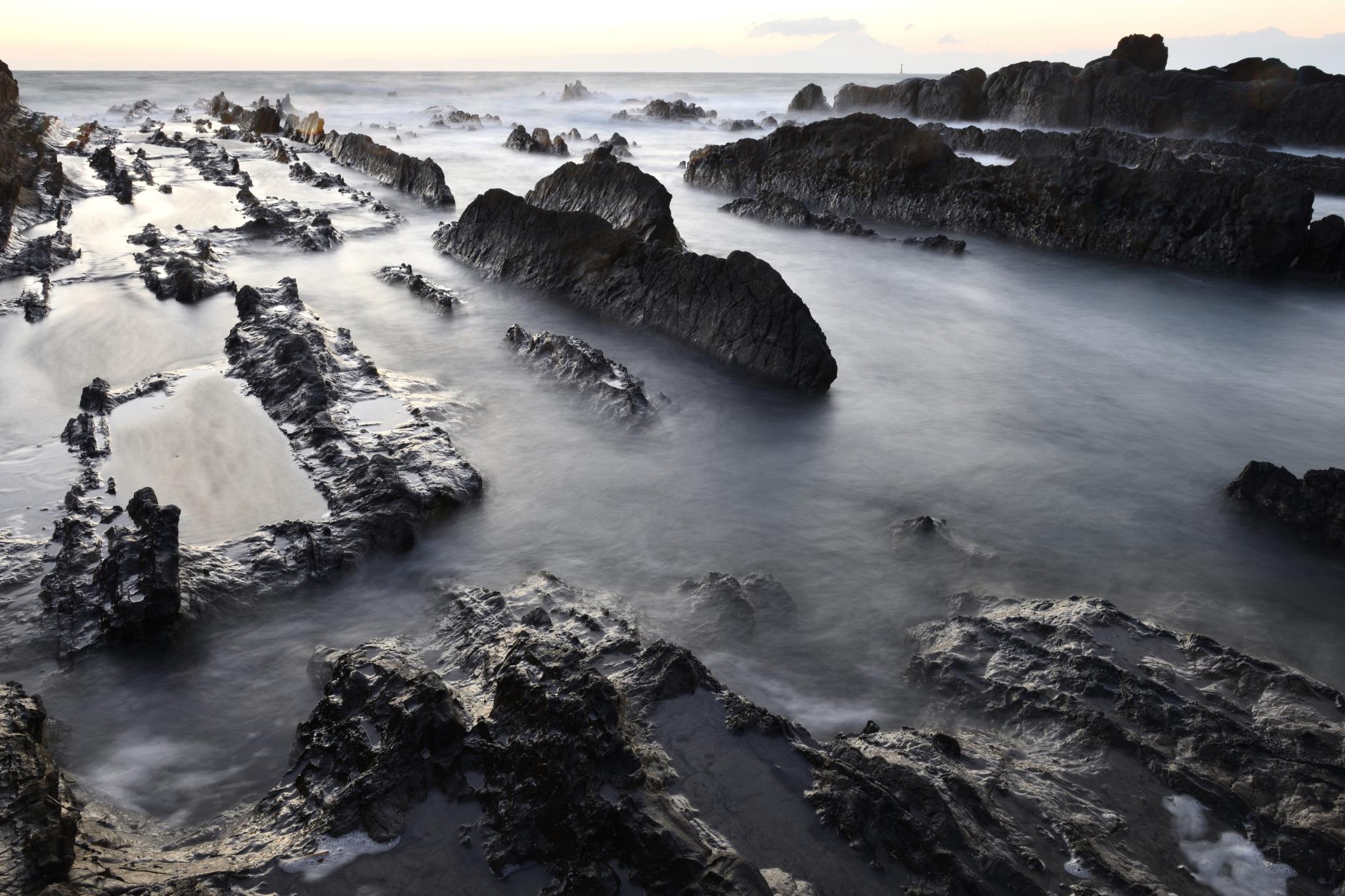 長い歴史の間に波に洗われ浸食されて出来た見事な岩礁ですね。