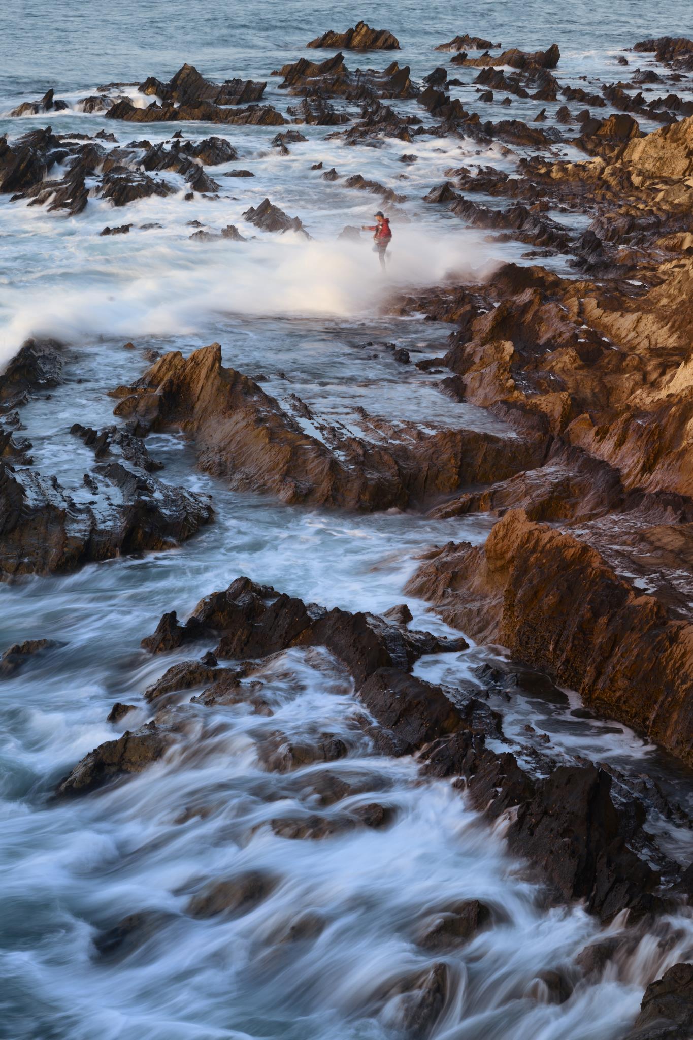 釣り人を波の豊かな表情と絡めたく苦労しましたが、