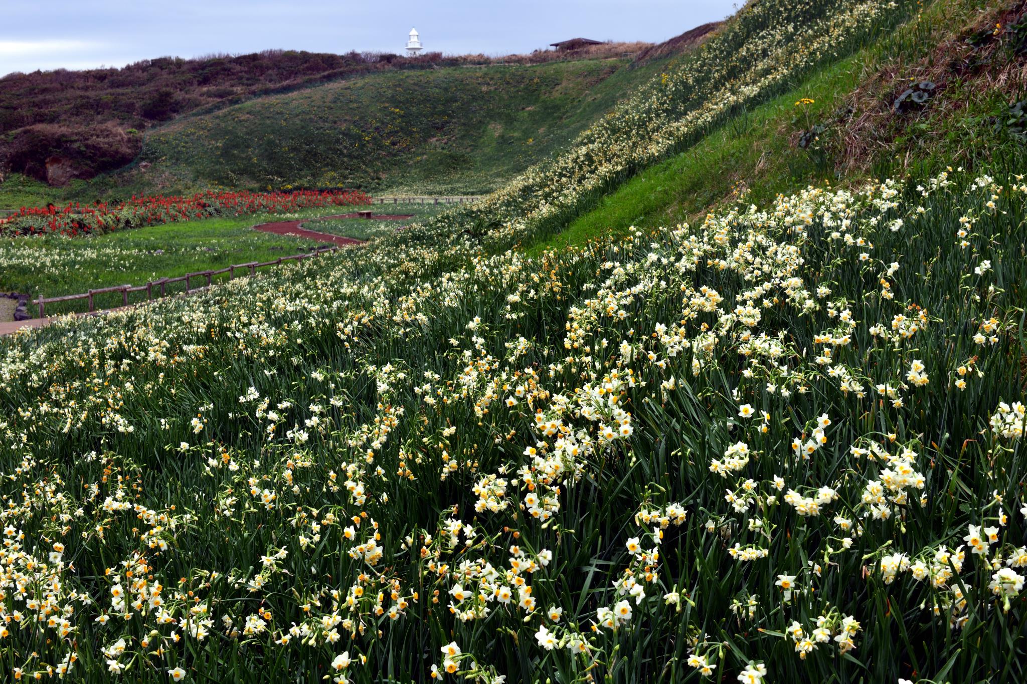 爪木崎の水仙を現すのはやはりこの位置ですね。懐かしく思いました。