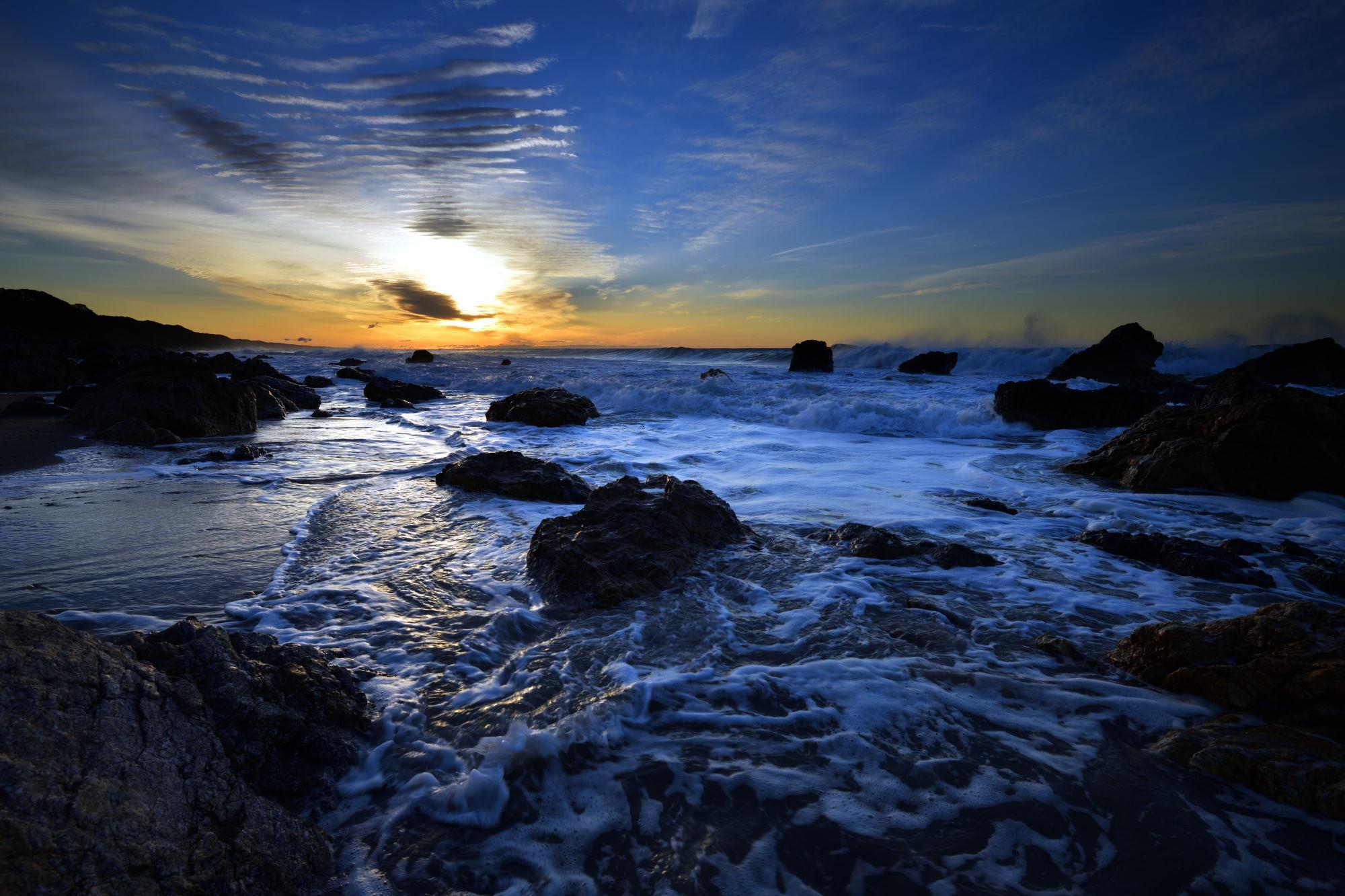 速いシャツターで砕ける波、あるいは遅いシャッター