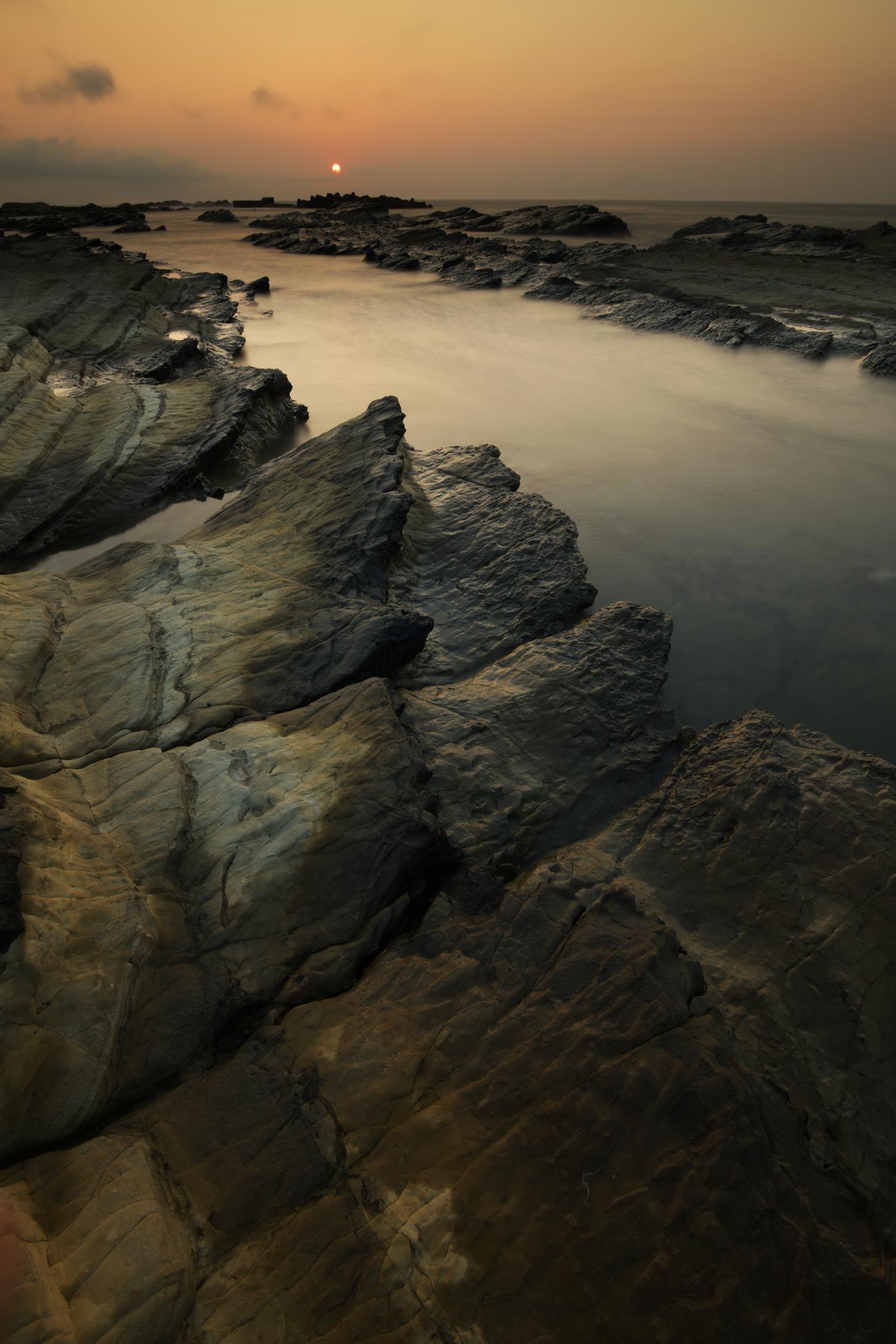 しかし、仕上がりの一葉は三脚の脚が画面下にはいり、もう一つは長靴の足跡が岩礁に残り画面に映ってました。超広角でよくやるチョンボです。