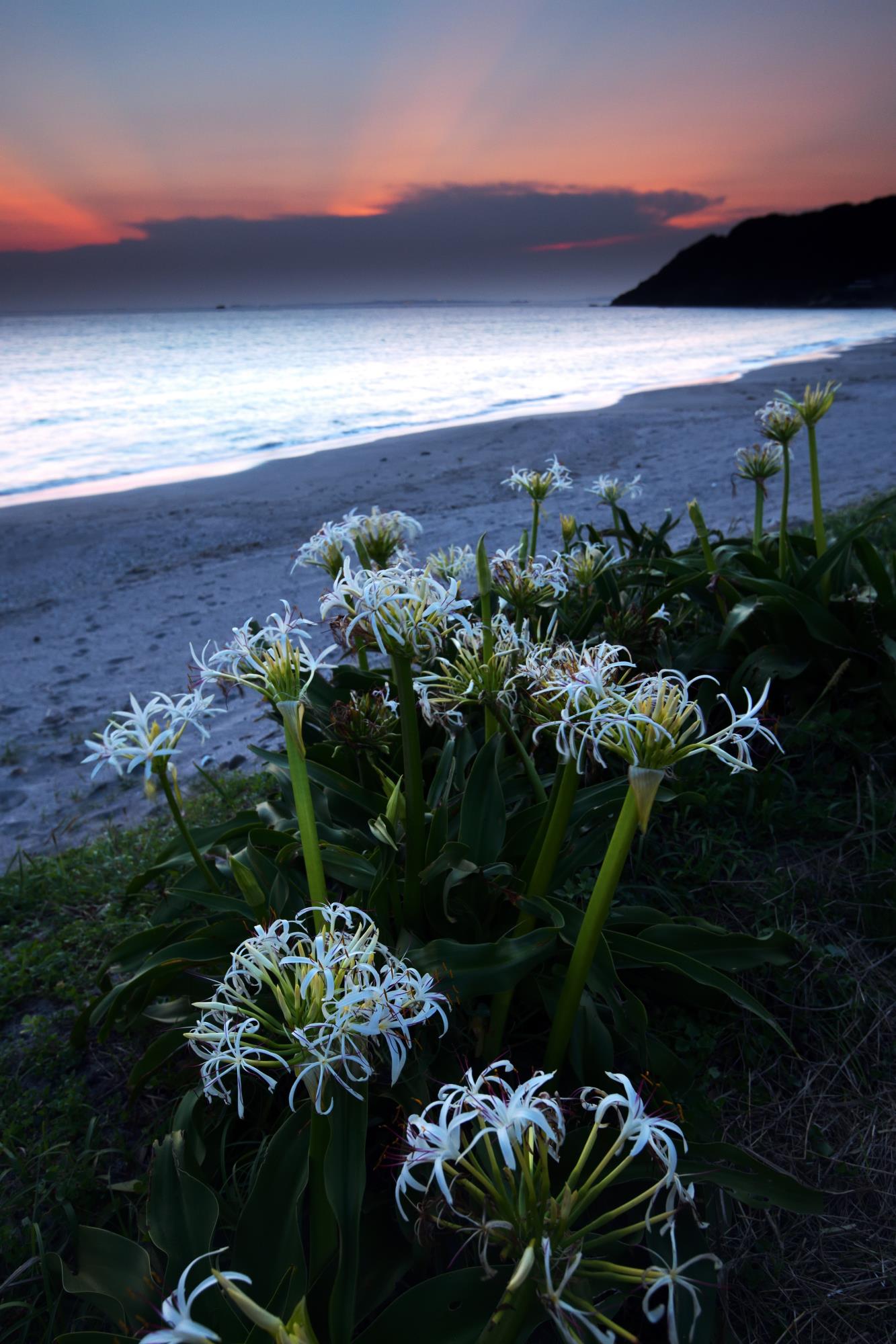 ハマユウの開花時期は7月から9月、雰囲気のある一枚だと思いました。