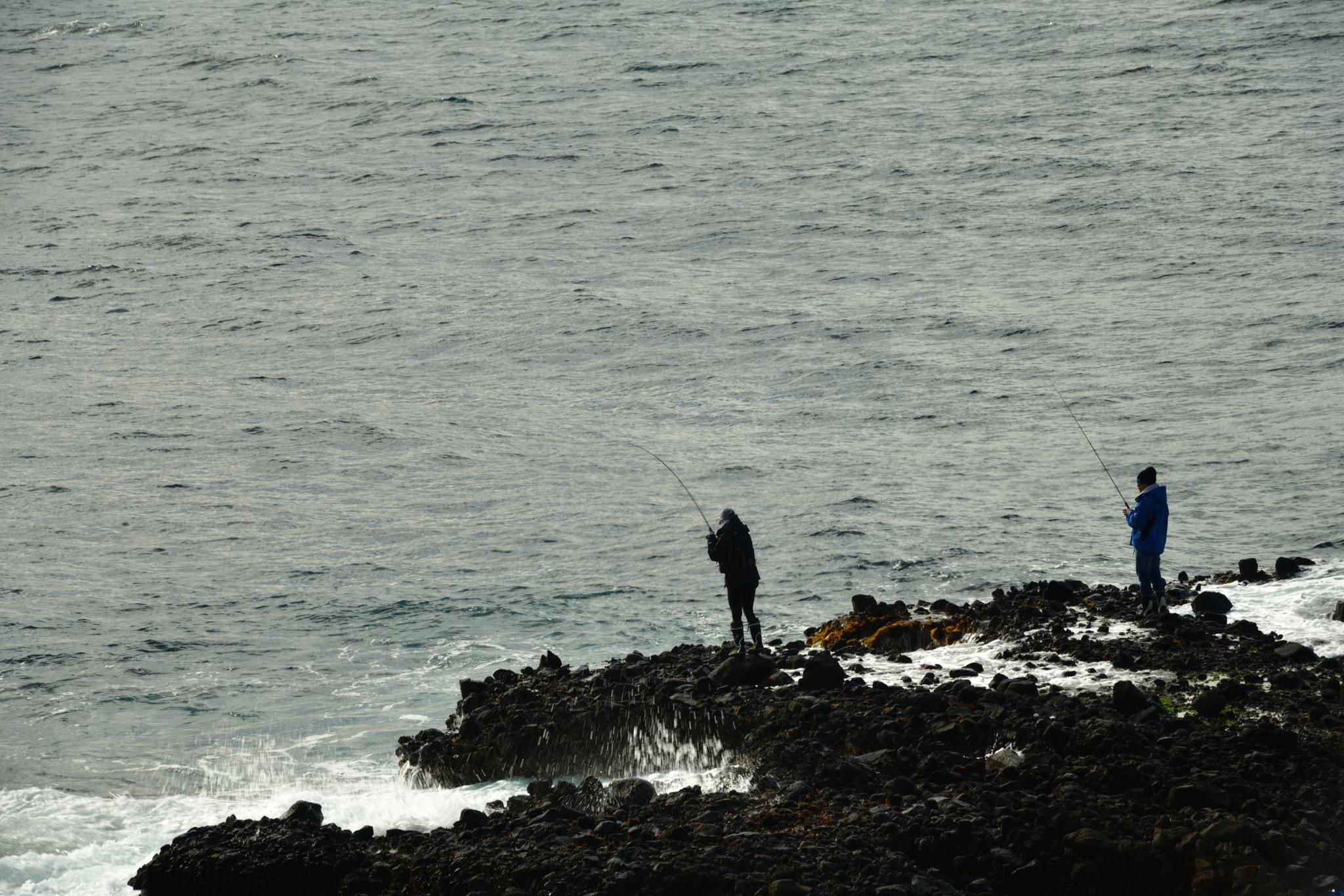 釣り人二人。先のルメックスのコンテストは応募したいような二人です。餌のカニを交代で撮りながら釣り糸を垂れてました。