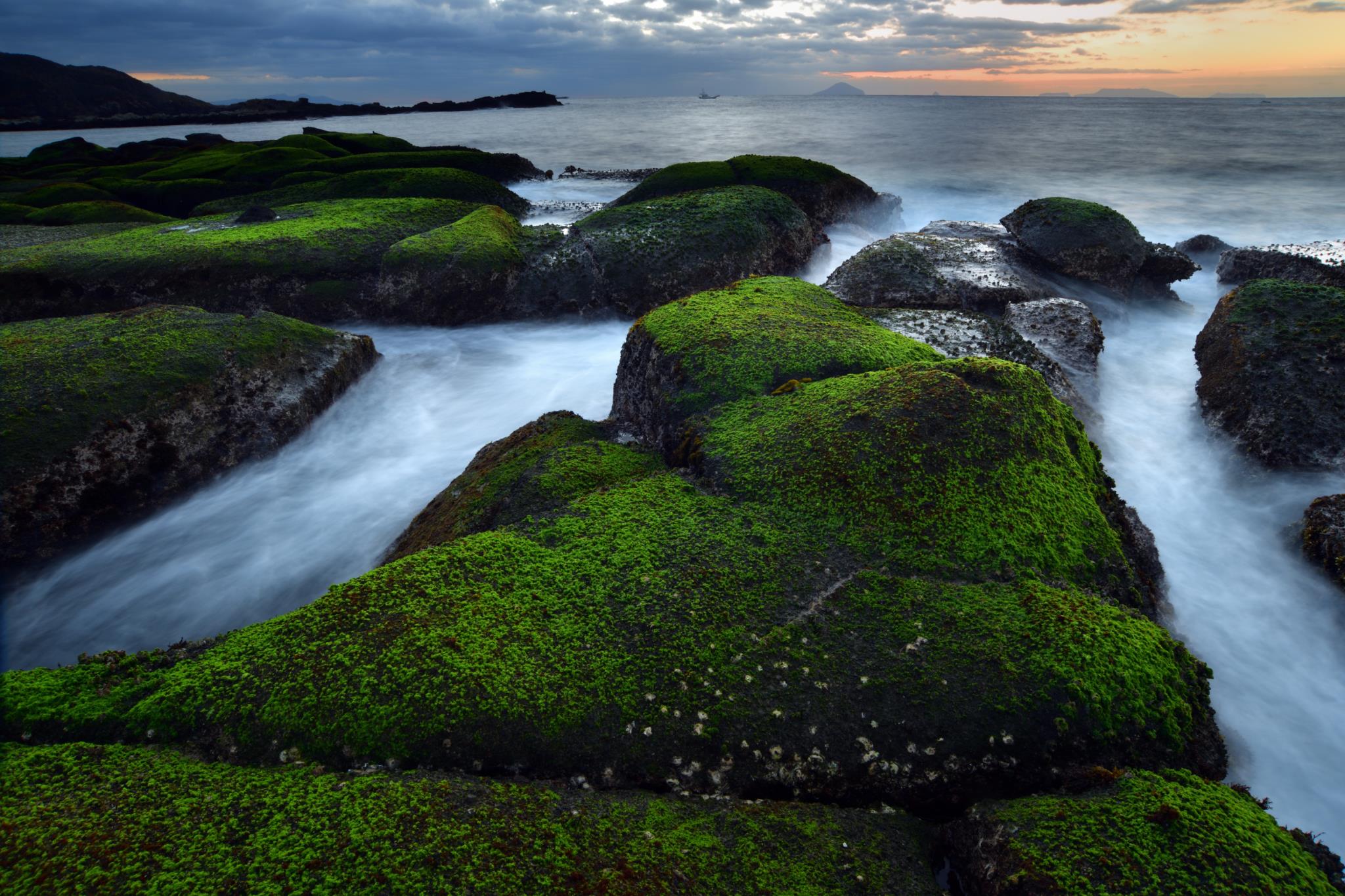 手前の岩のリボンアオサの緑がもう少し濃いところがあれば東の岩礁の緑と呼応して更に良くなるのでしょうか。自然相手は難しいですね。