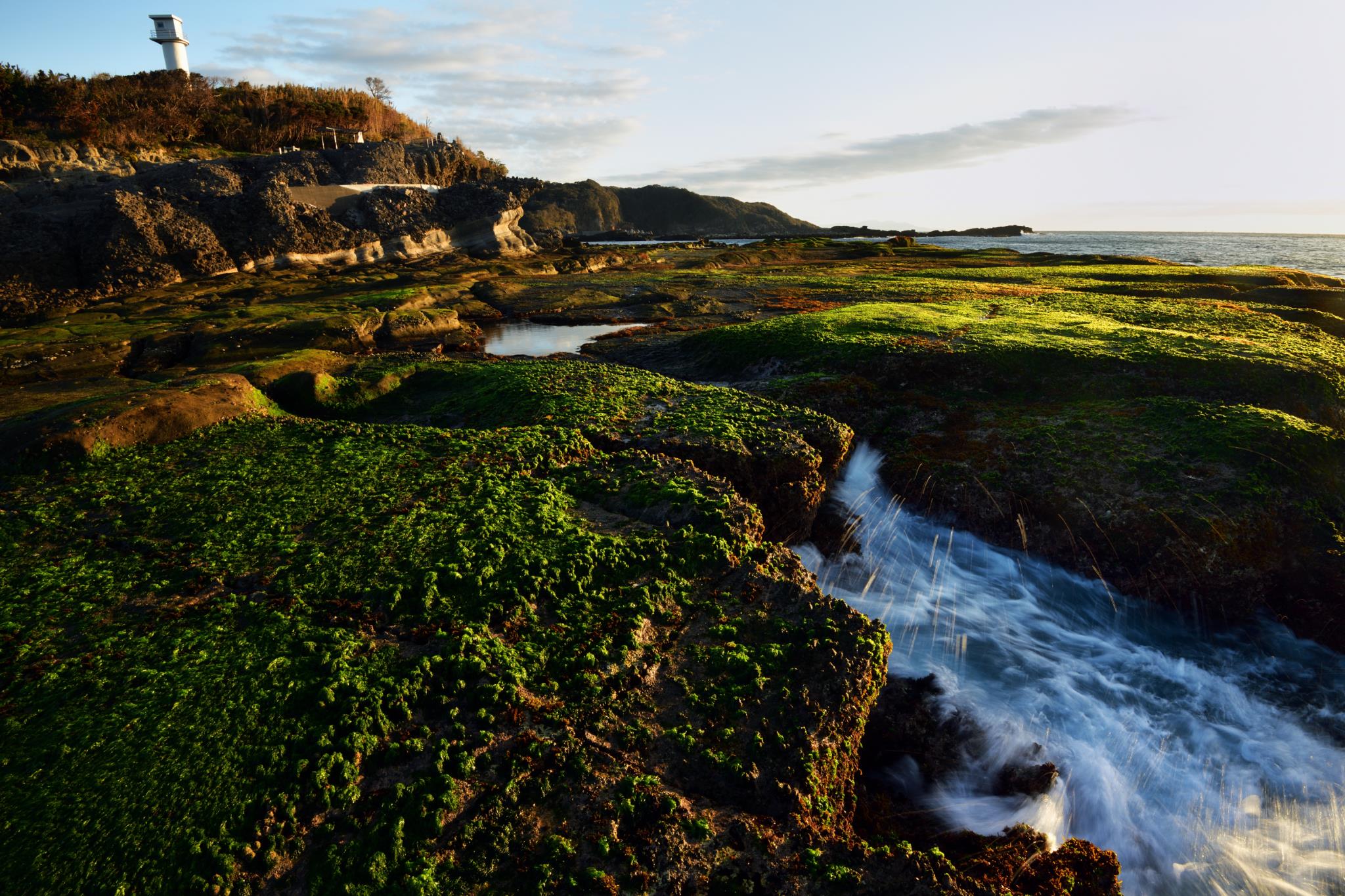 その割れ目に潮が上り引いたタイミングでシャッターを切ってます。