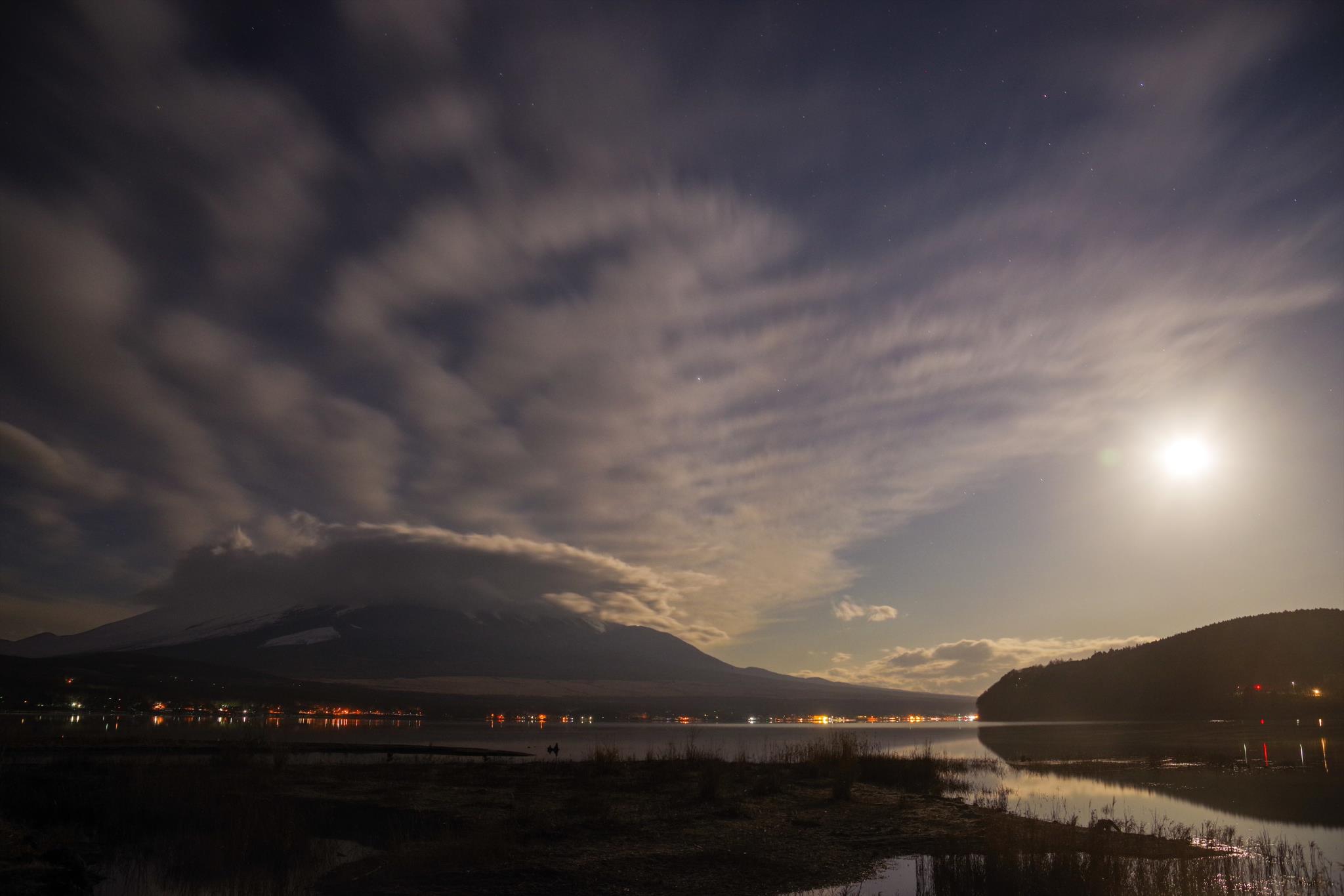 月明りのある方向は少し見えるのですが、富士山方面は良く見えませんでした。撮ってみて、面白い雲が広がっているのが判りました。