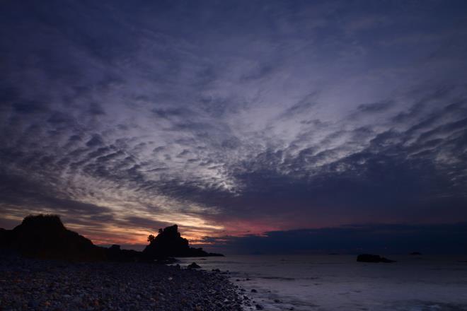 雲(空)の様子がすごく良いと思います。私も海岸の石ころを捨てて空の表現を優先してしまいますね。NDで空を落として石ころを出せますかね。主題が・・・・。