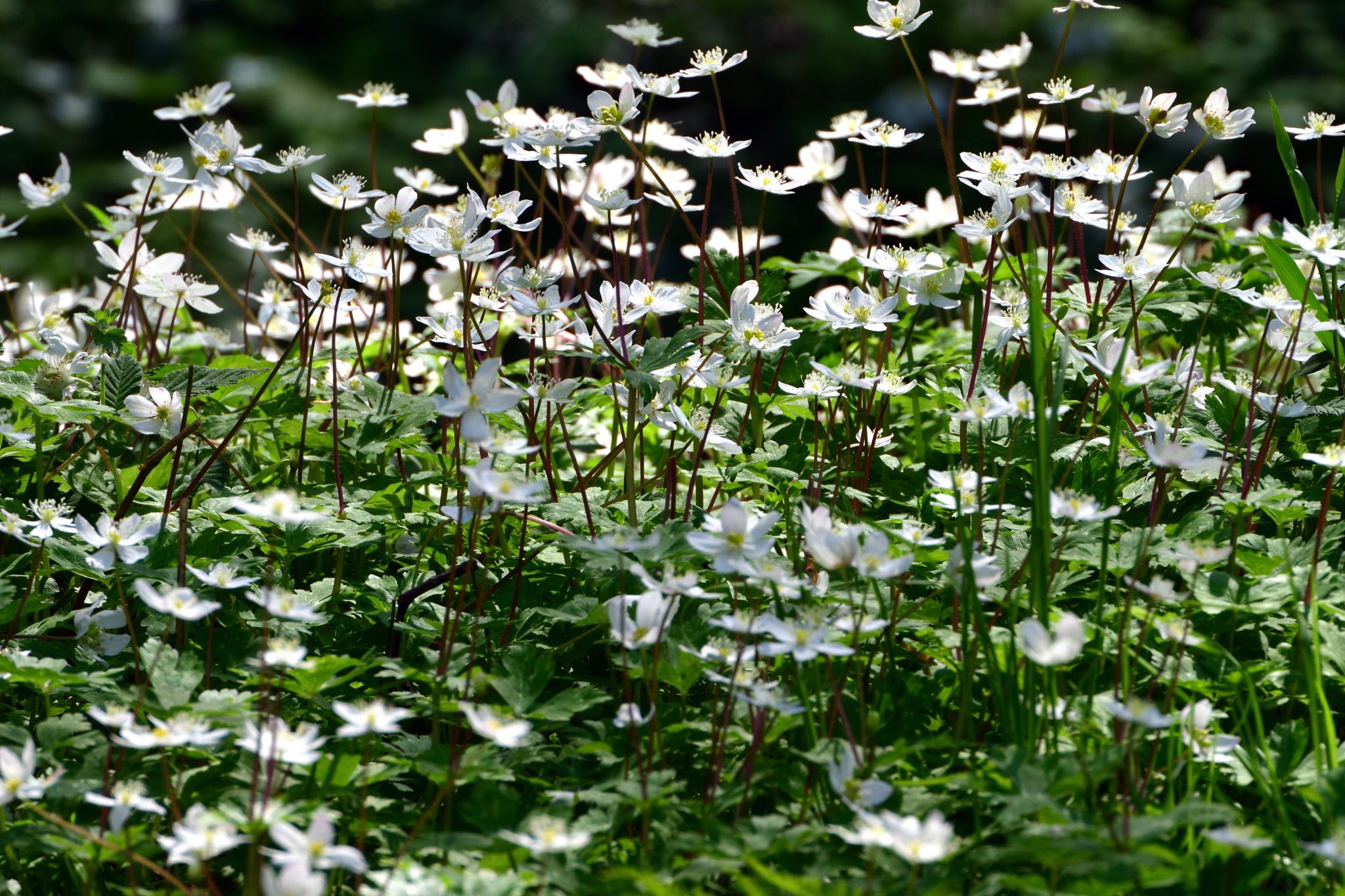 二輪草の群落です。湿潤な雑木林、適度な木漏れ日、さらには、50年に渡る地域の人々の愛情で
