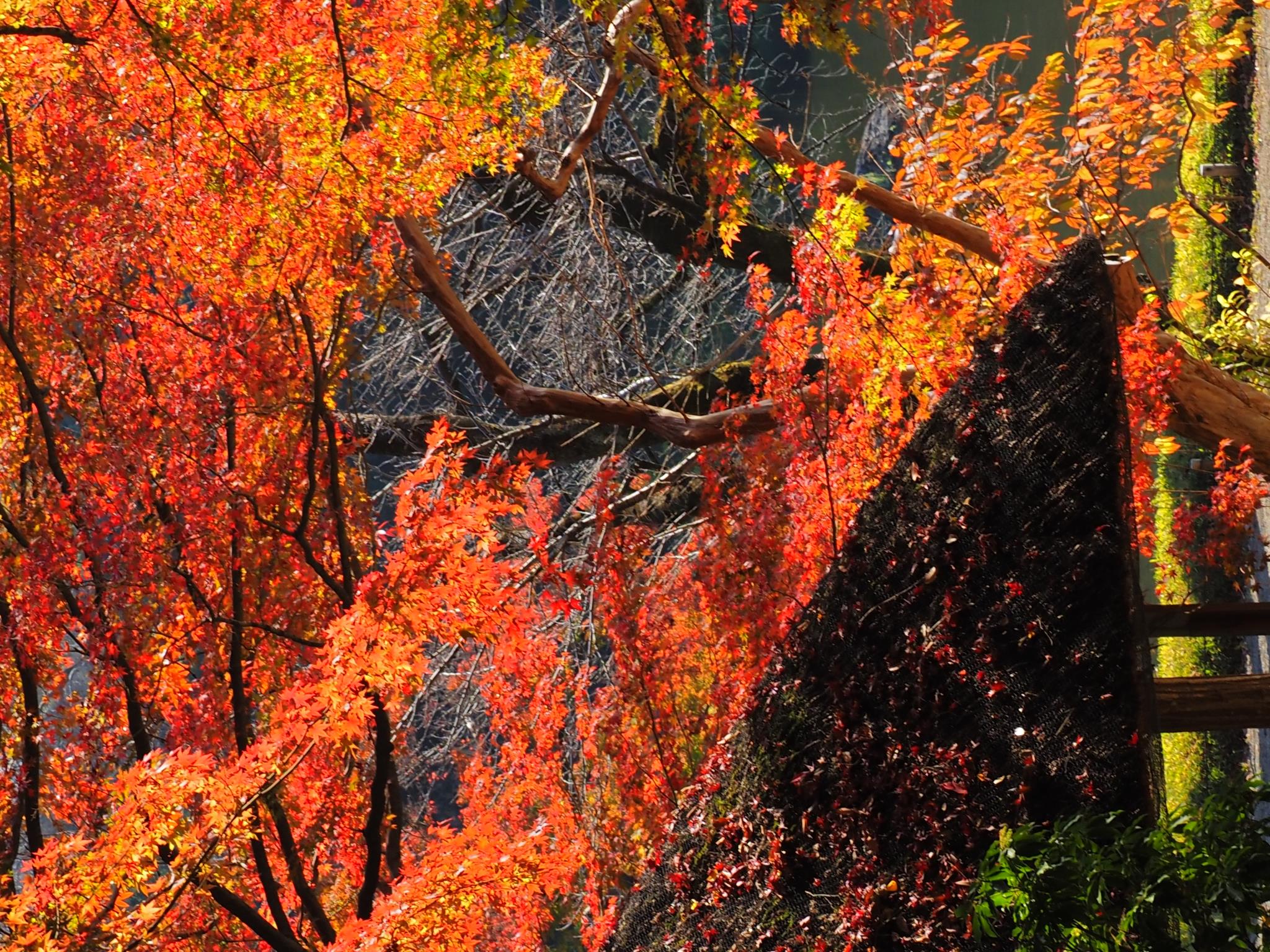 東屋の屋根葺きは茅葺き屋根にみえますが。