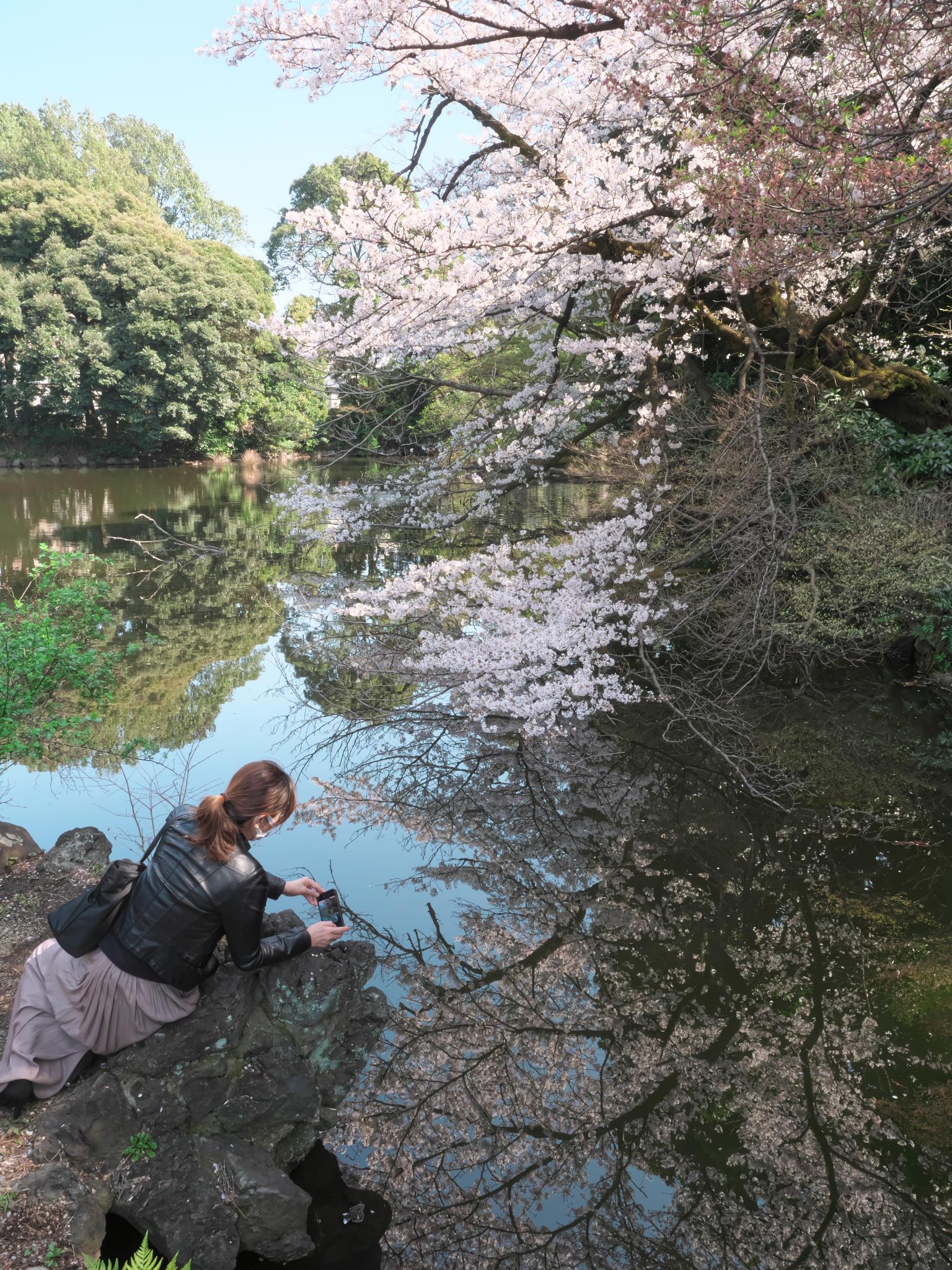 覗きこむ姿に魅せられて、ここでは、桜よりこの女性が主役で撮りました。