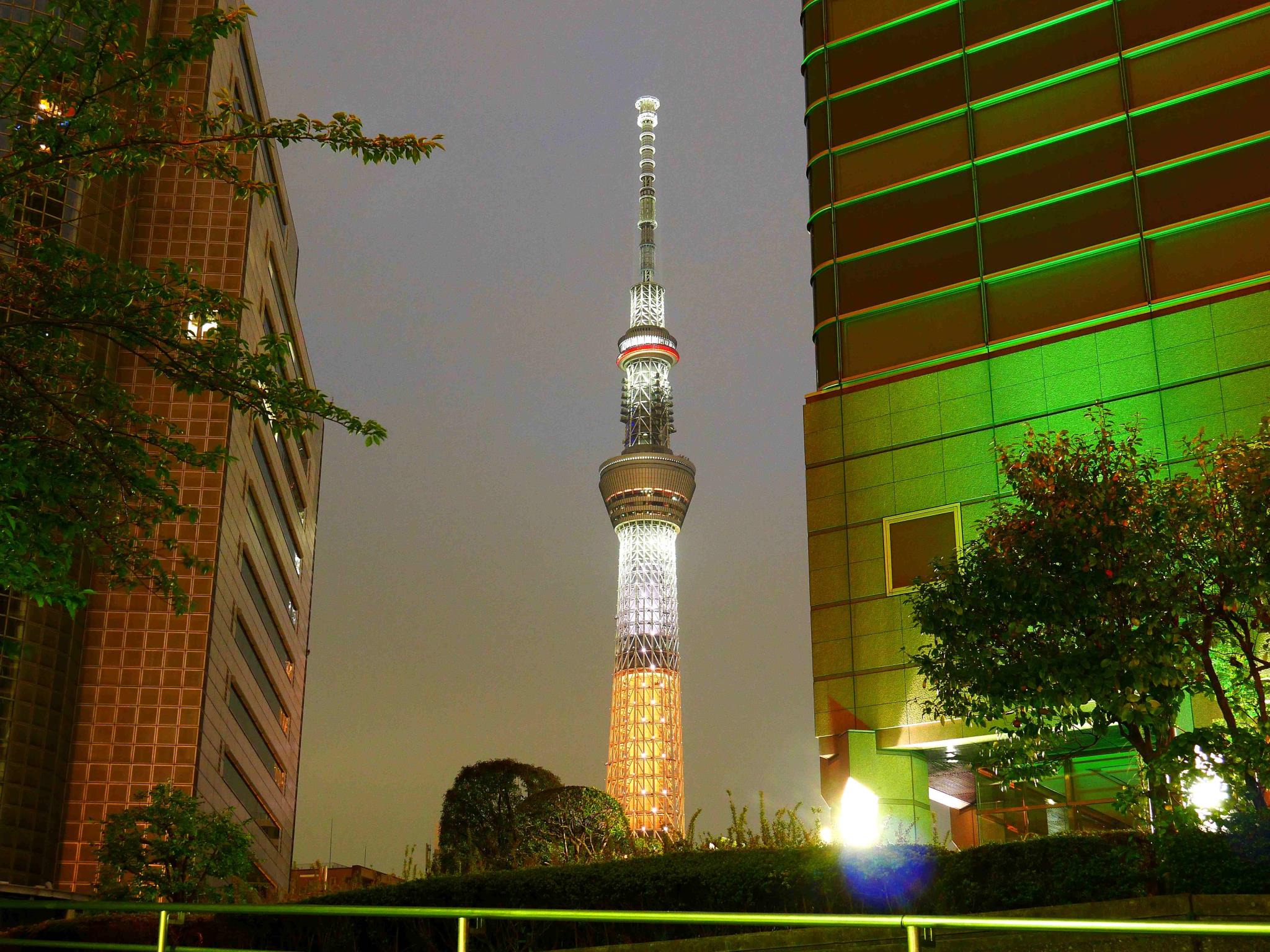 スカイツリーのライトアップの色の変化のスマートさは、さすが平成のタワーだけのものがあります。