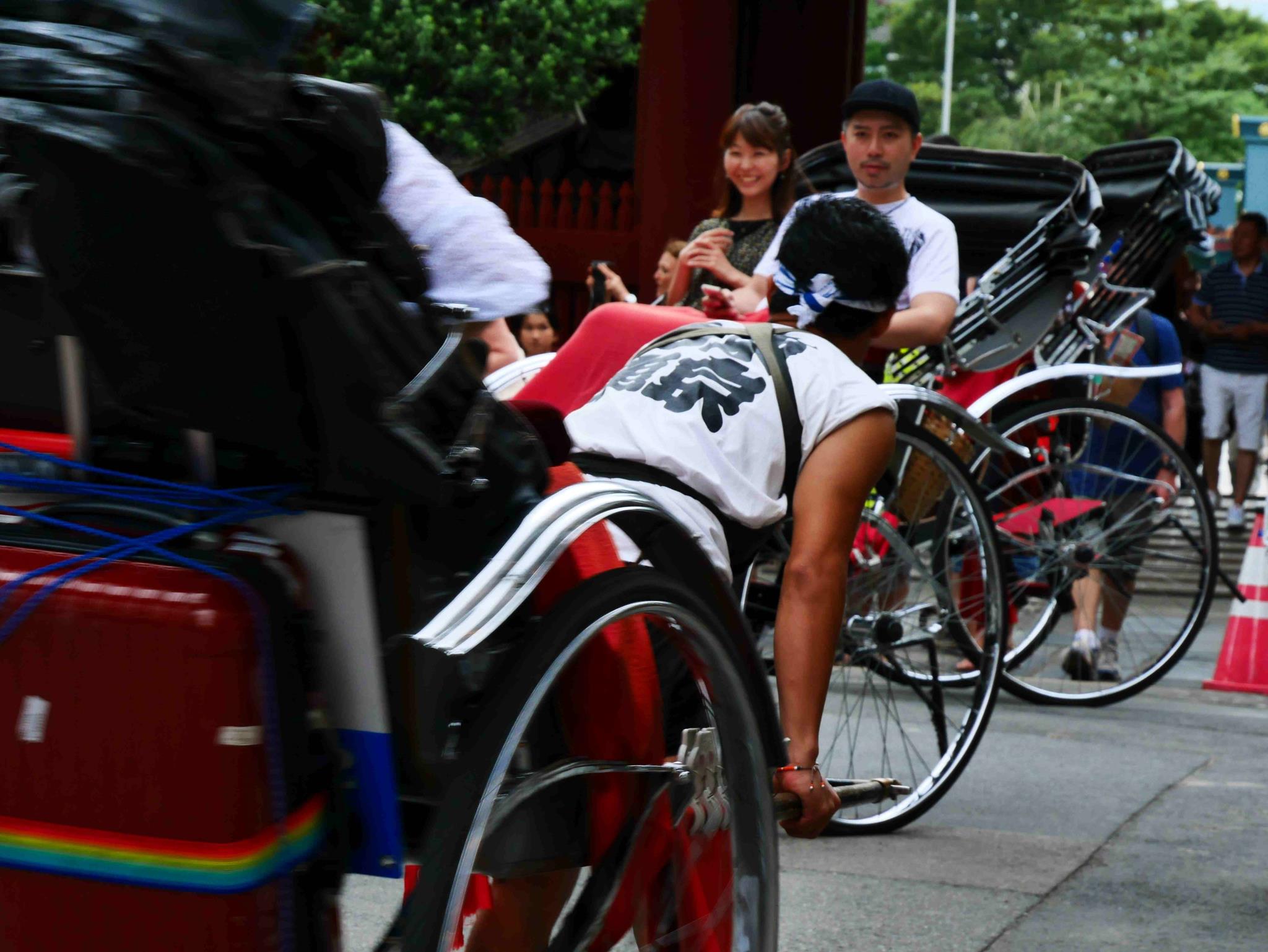 人力車に乗っているカップルの表情がいいですね。