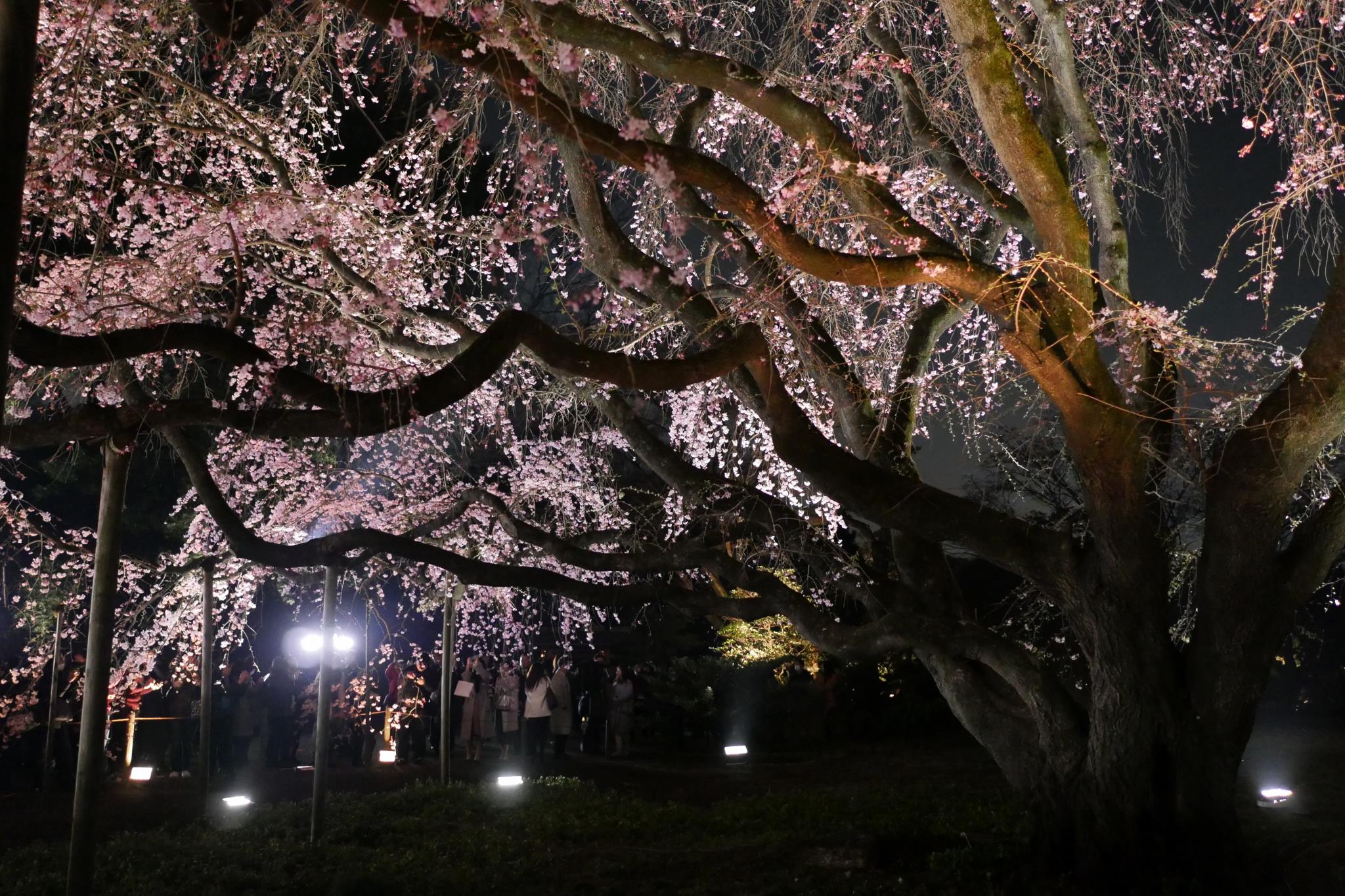 堂々とした樹形がライトアップに浮き上がっています。