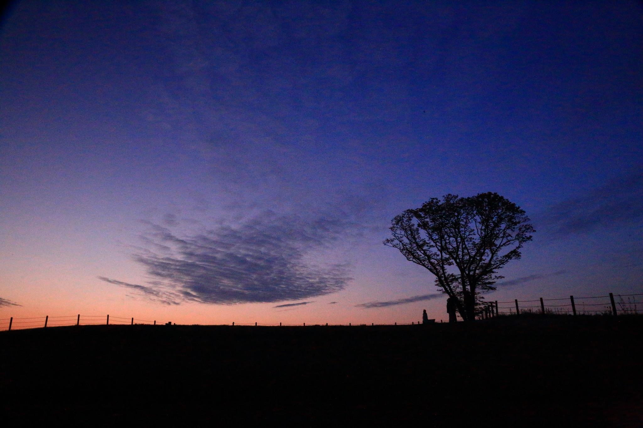 今日一日の幕が下りようとする瞬間、やがて夜のしじまに閉ざされていく時間の経過を感じる光景です。