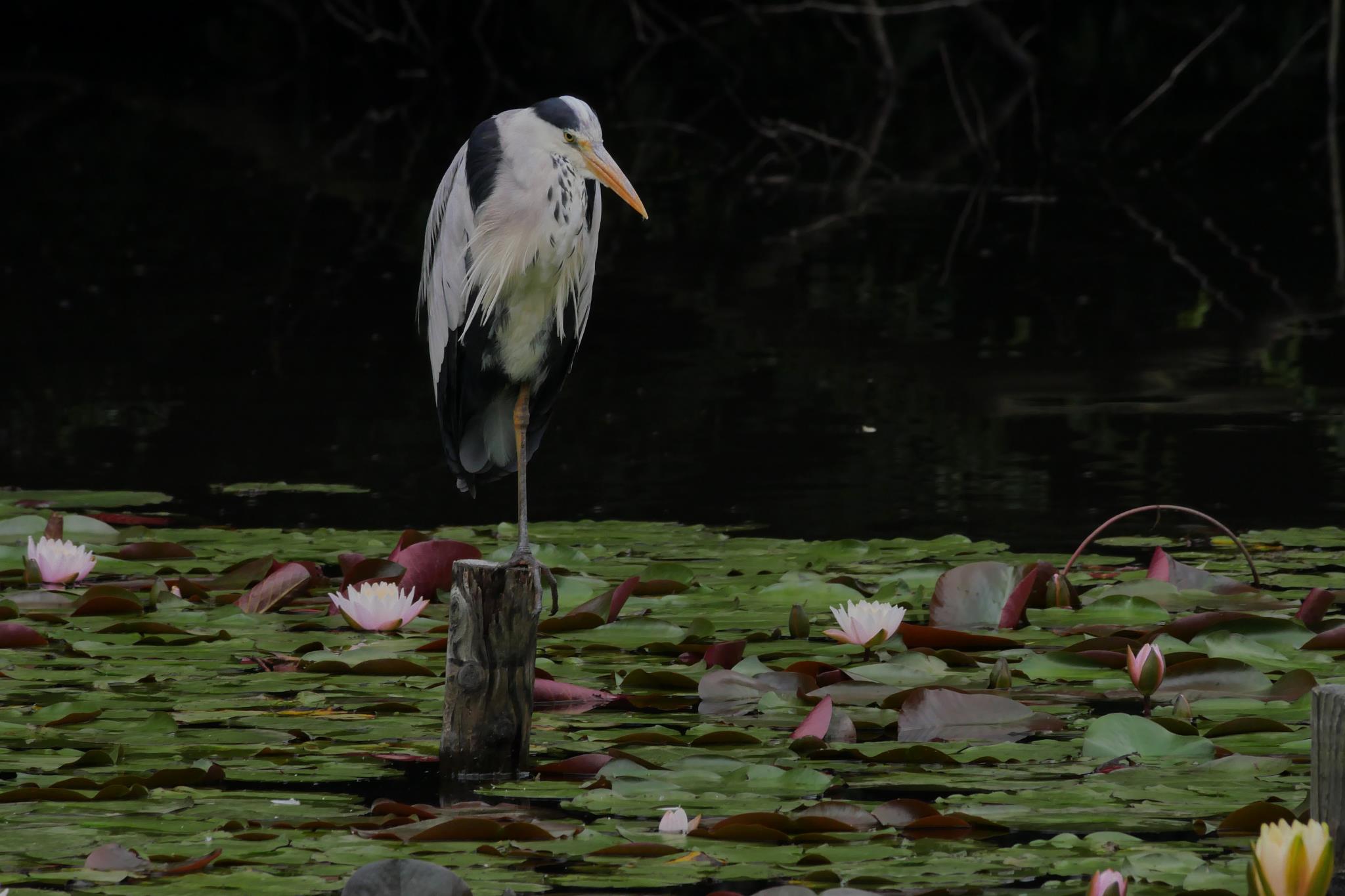 このアオサギのお陰で、この蓮池がさらに楽しめました。