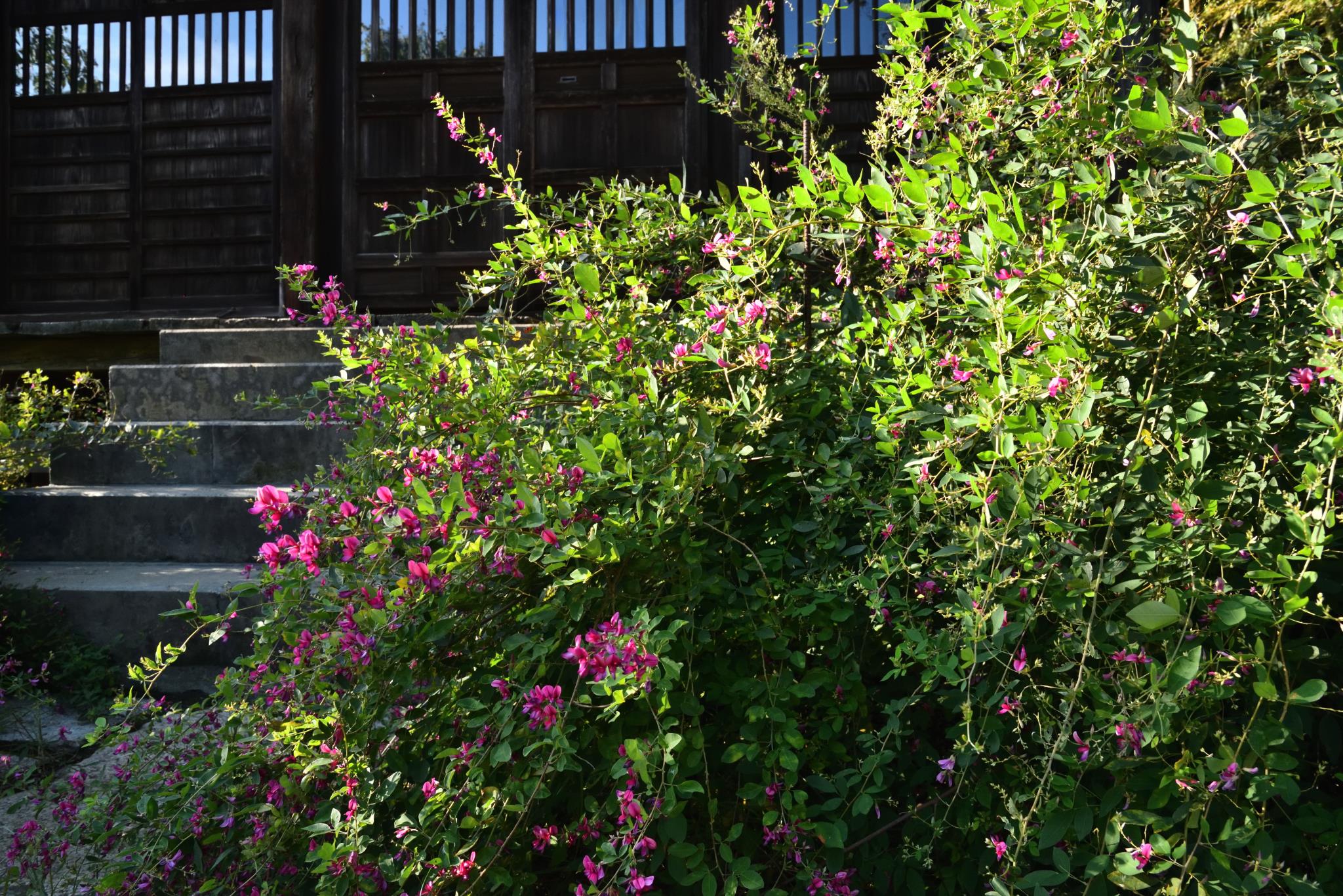 萩は日本古来の花なんでしょうか、古い建物と似合いますね・・。