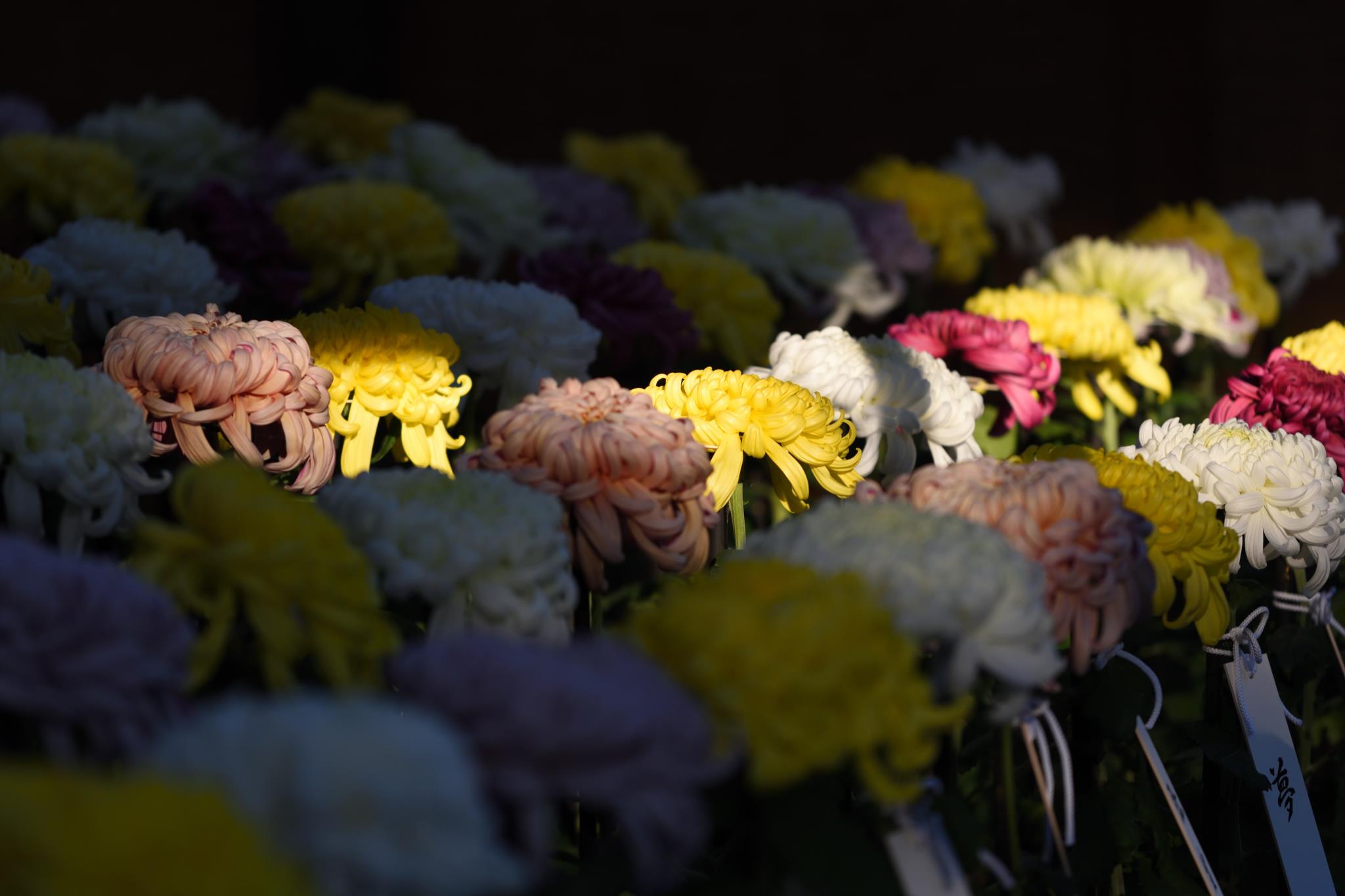 新宿御苑の菊花壇の菊は見る分には綺麗で見ごたえがあるのですが、どう撮影するか、難しかったです。