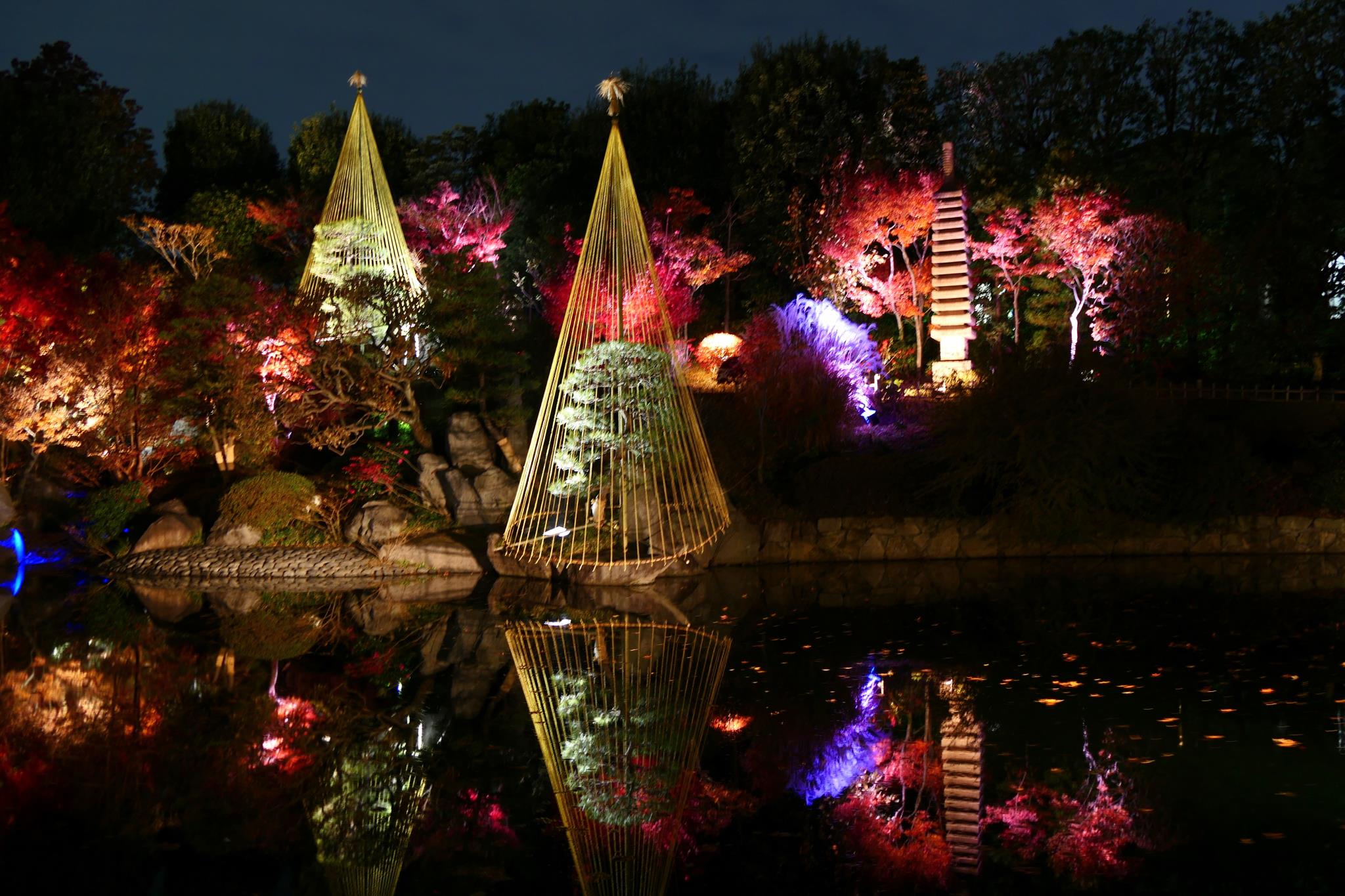 小さな庭園でライトアップに工夫していました。