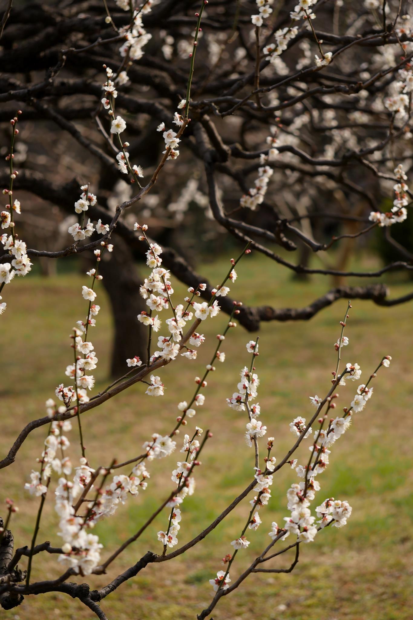 横構図は梅の花自体の美しさと雰囲気が出ているように感じ、縦構図は奥行き感が良く出ているように思います。