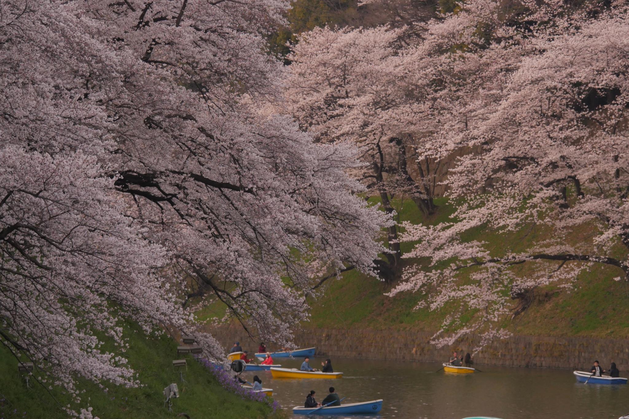 水面からの桜を楽しむためには、ボート乗り場の長蛇の列を厭わぬ我慢が必要のようですね。