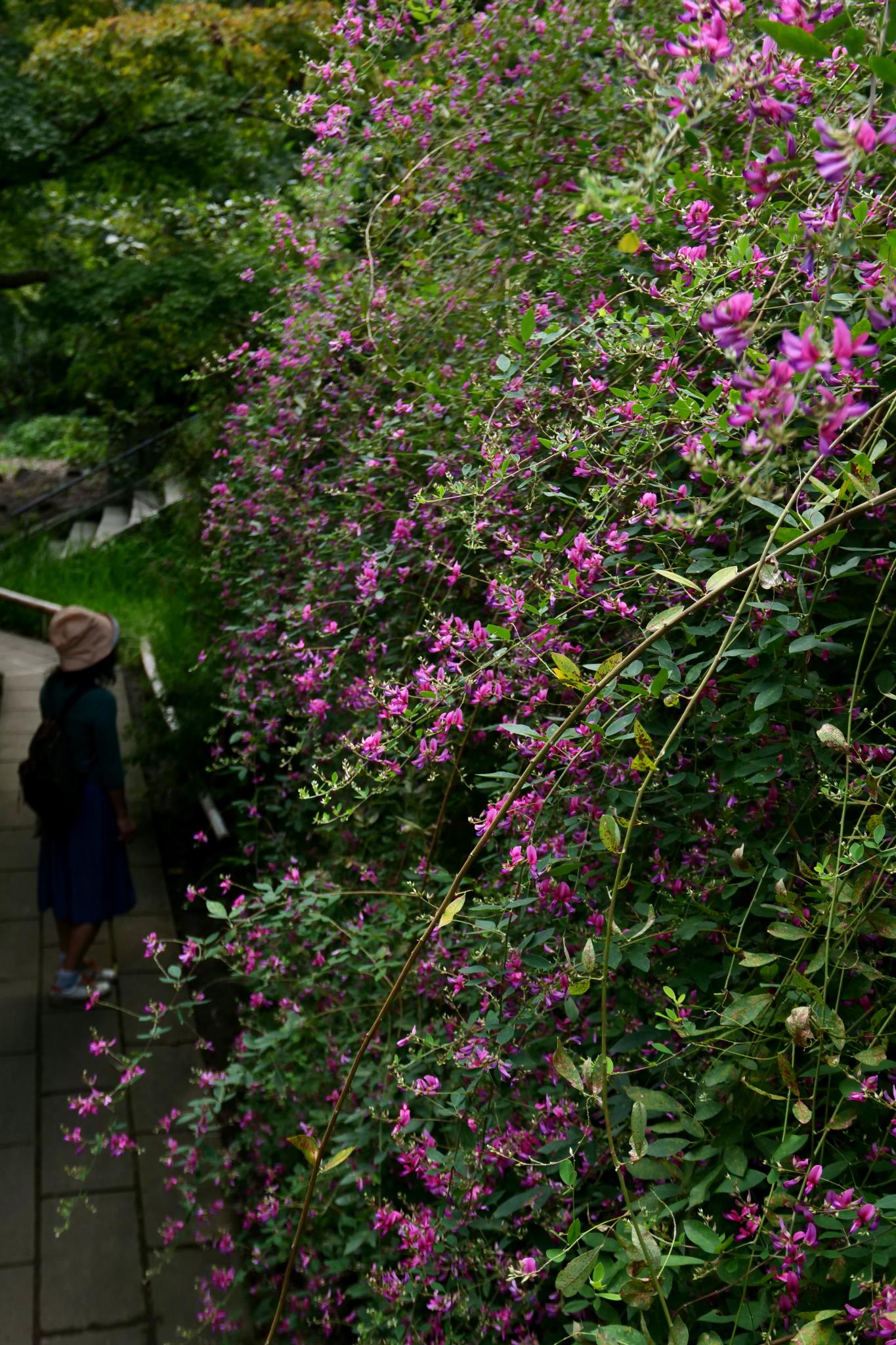 ハギの花はかなりのボリューム感がないと映えませんね。英勝寺のミヤギノハギは赤い花が見頃で、女性も地味な服装でしたのでハギの花を殺すことなく良かったです。