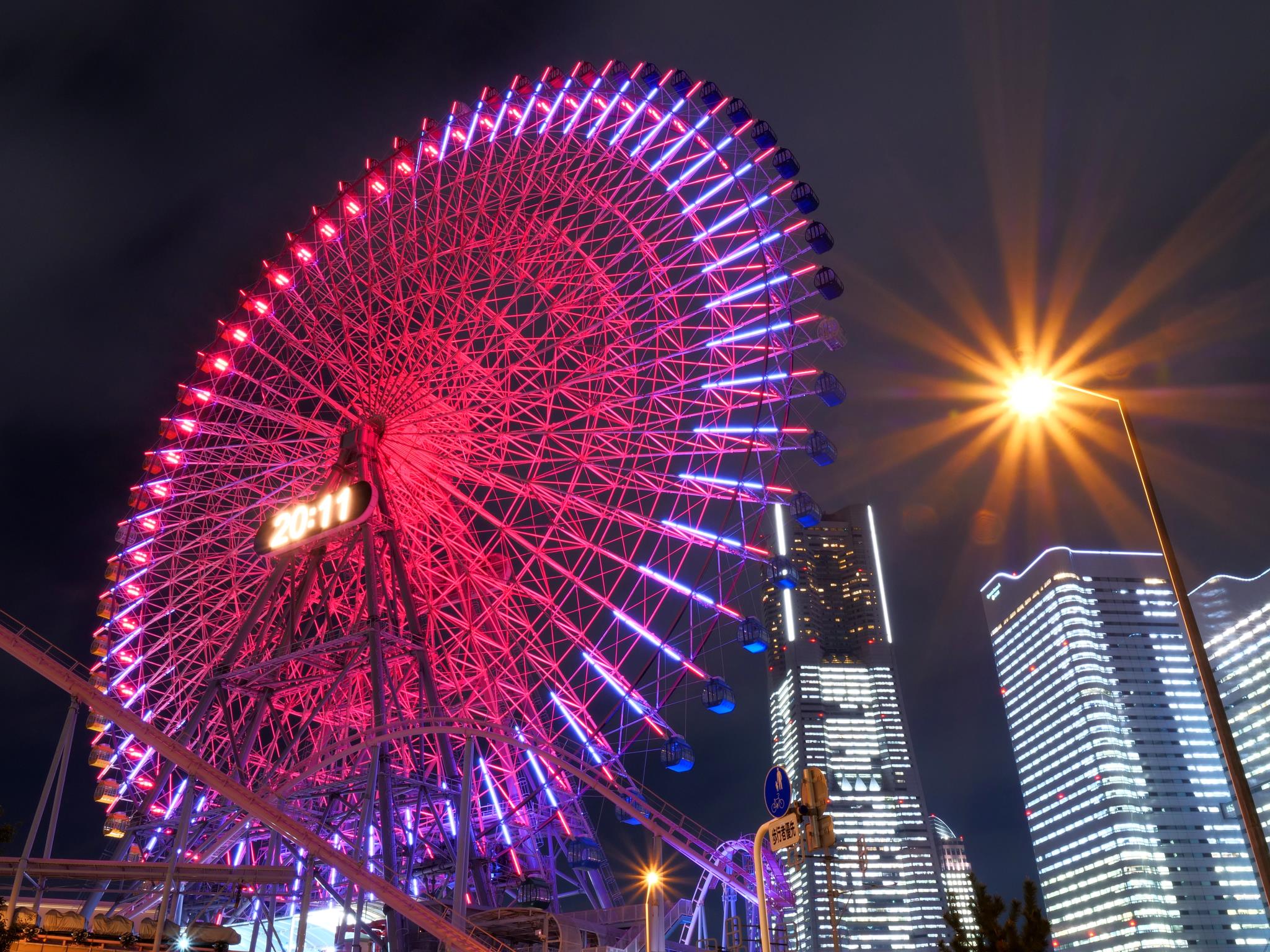 観覧車と同じくらい大きな街灯の光芒ですね。
