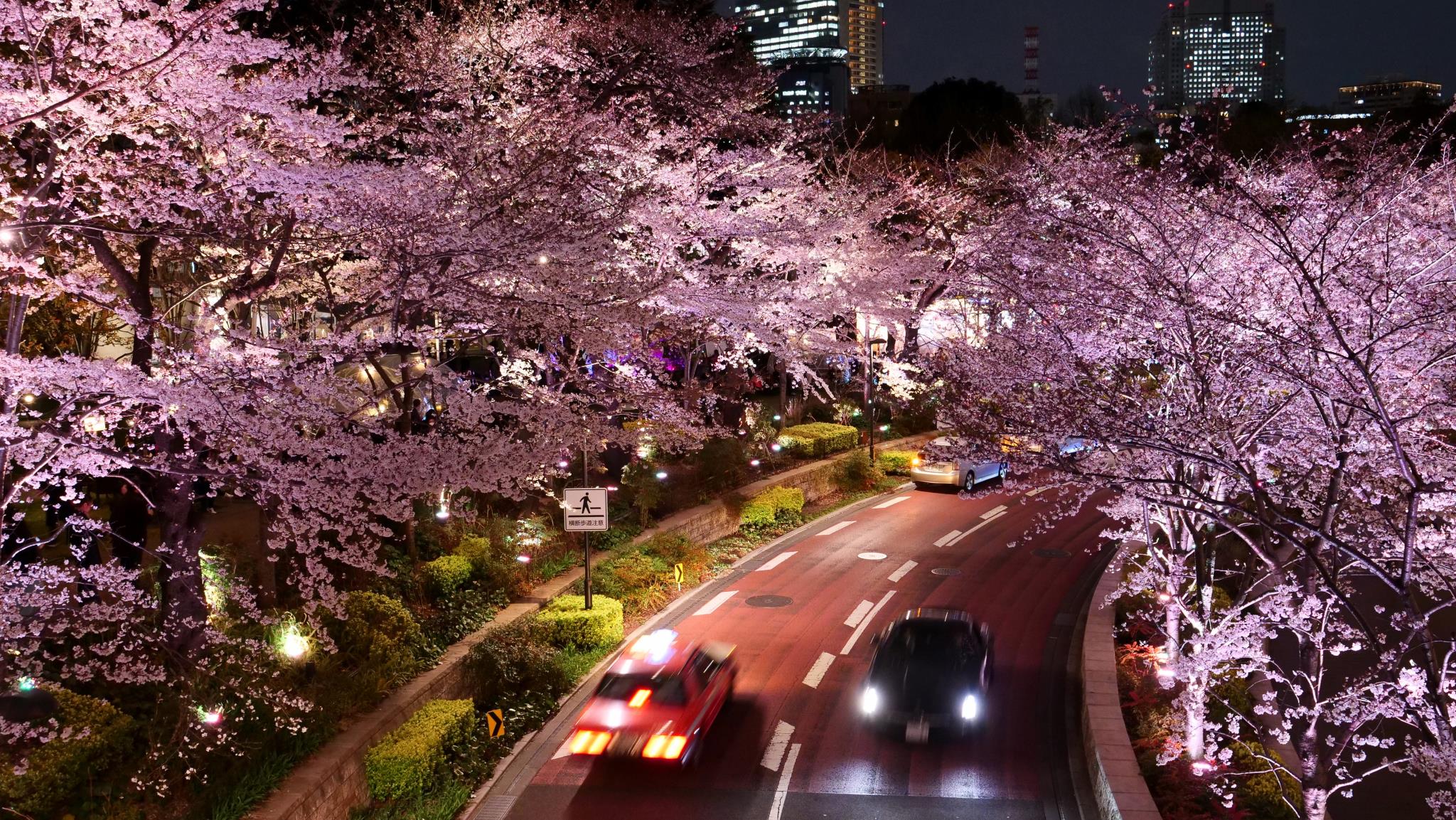 さすが都会のライトアップですね(桜の色が良いですね)
