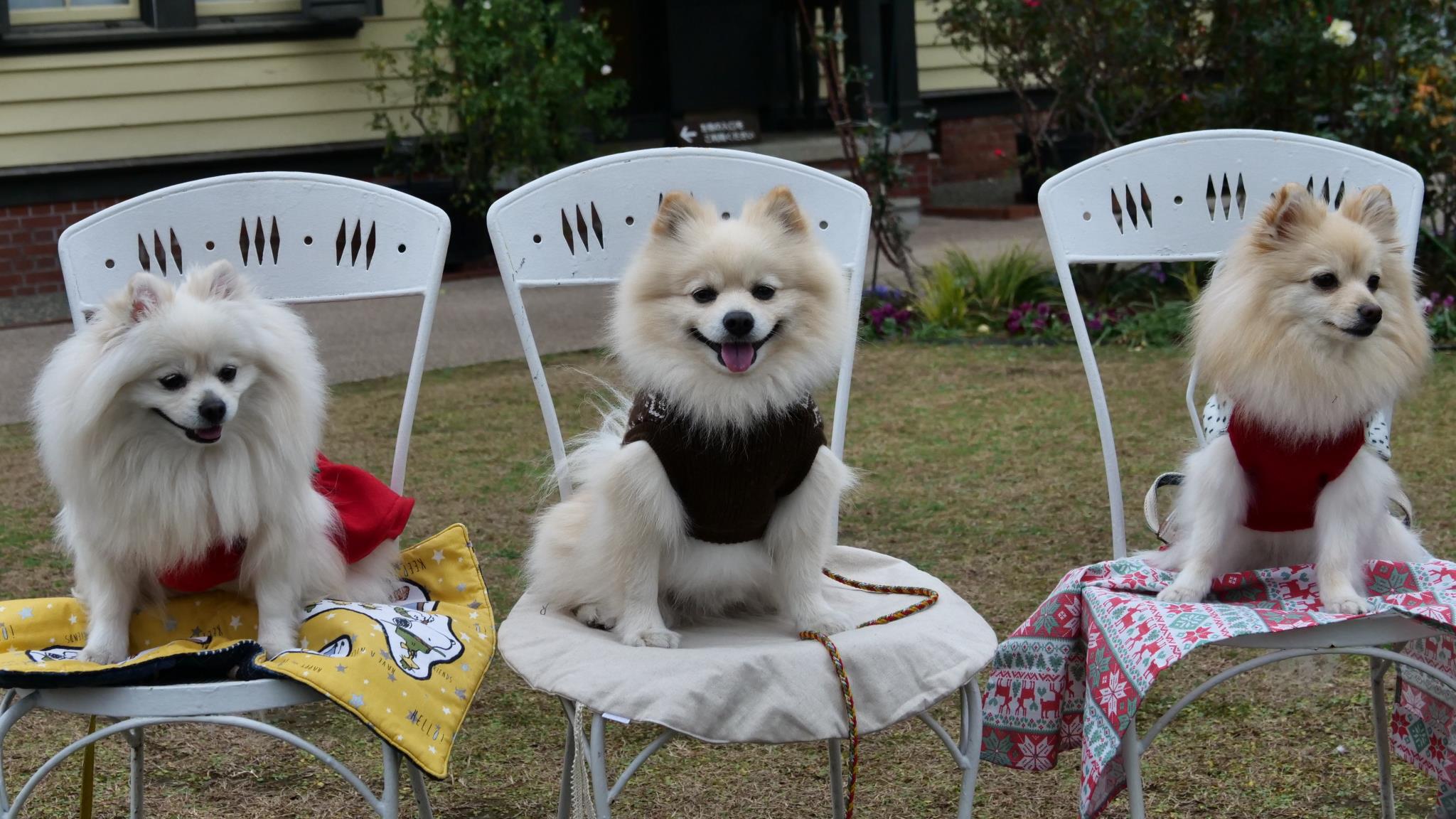 きちんとして撮影に答えてますね。特に真ん中のワンチャンはカメラ目線で可愛いですね。