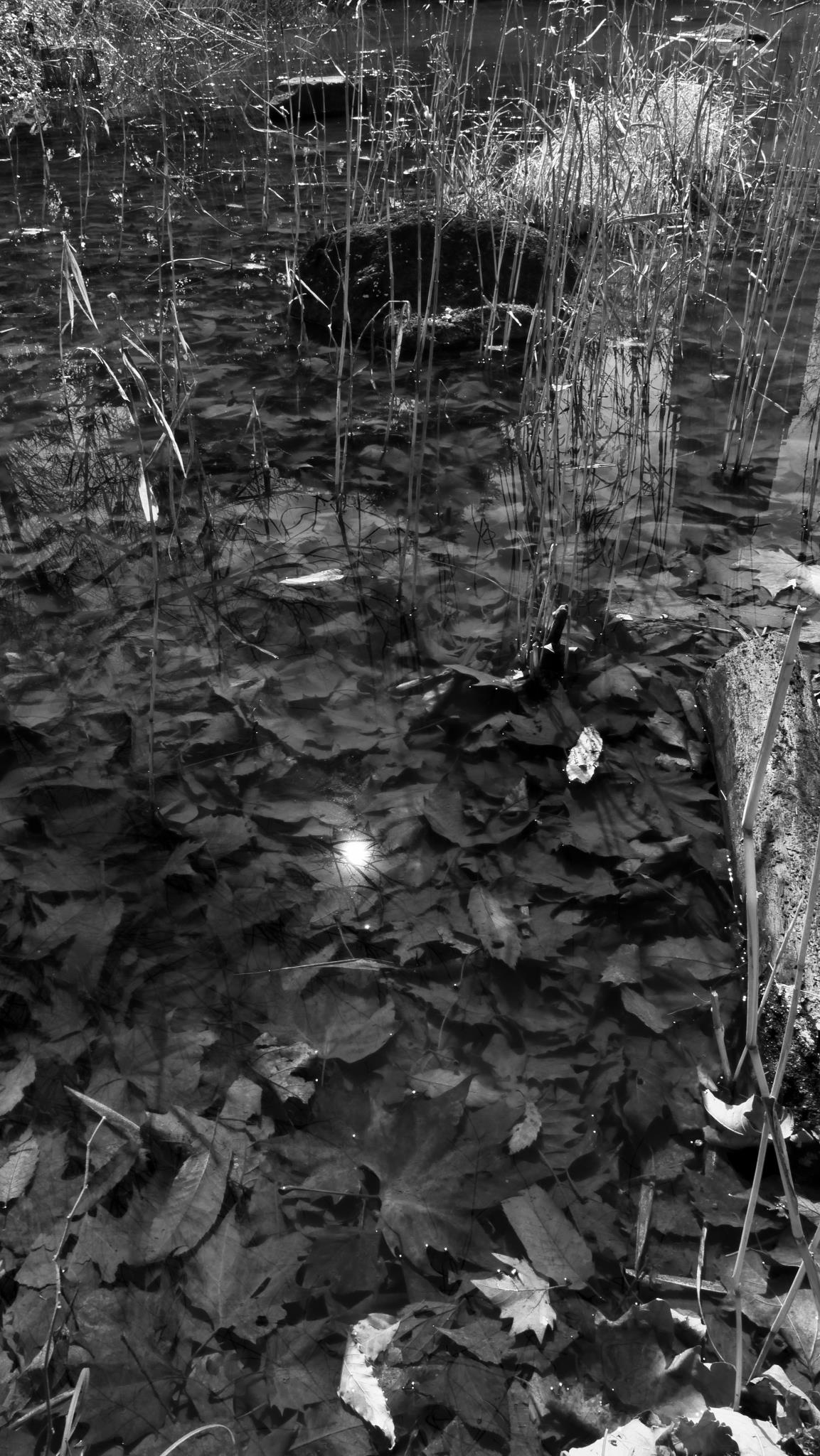 落ち葉のたまった所をポイントにしましたが、カエルの卵でもないかとアクセントになるものを探しましたものの、上手くいきませんでした。