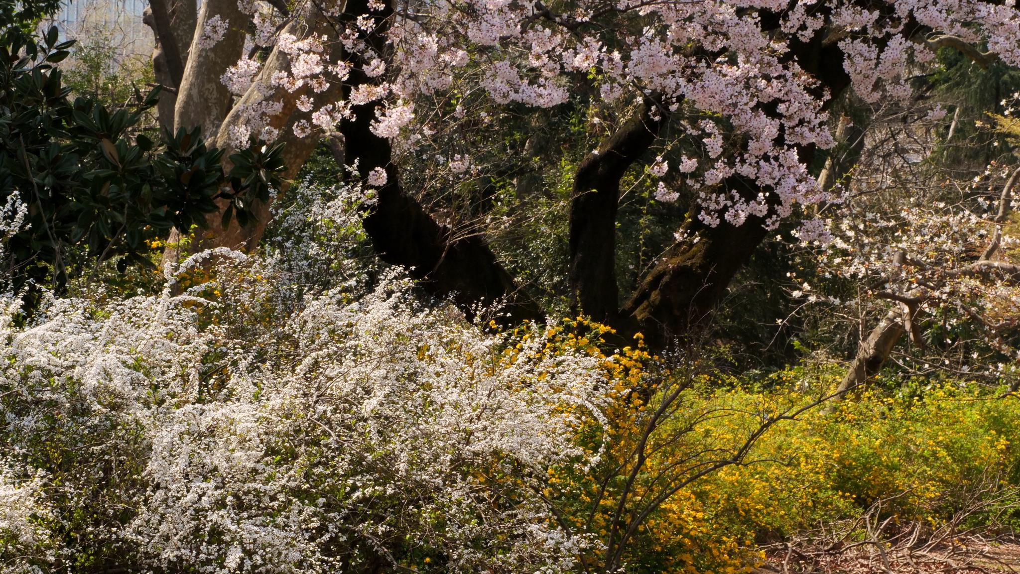 御苑の春の花々に辛うじて出会えて良かったとしています。