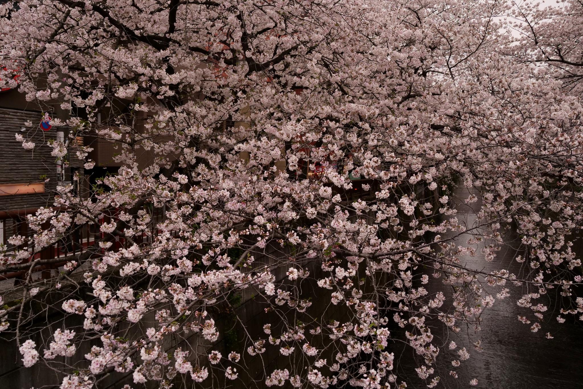 橋の上から、見事に張り出した桜を撮ってみました。