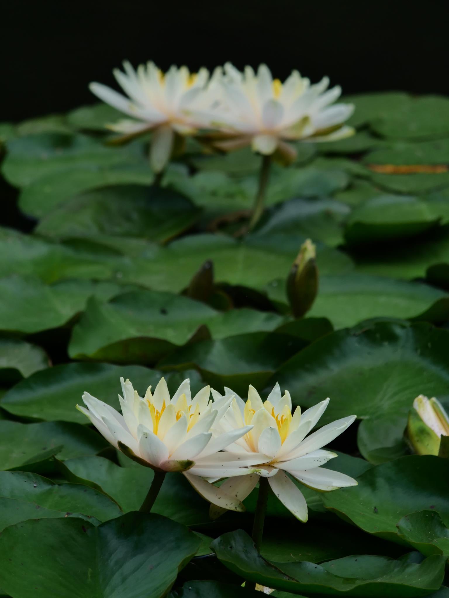 縦位置で並ぶ睡蓮、どちらも旬の咲きっぷり。いい構図を見つけたようです。