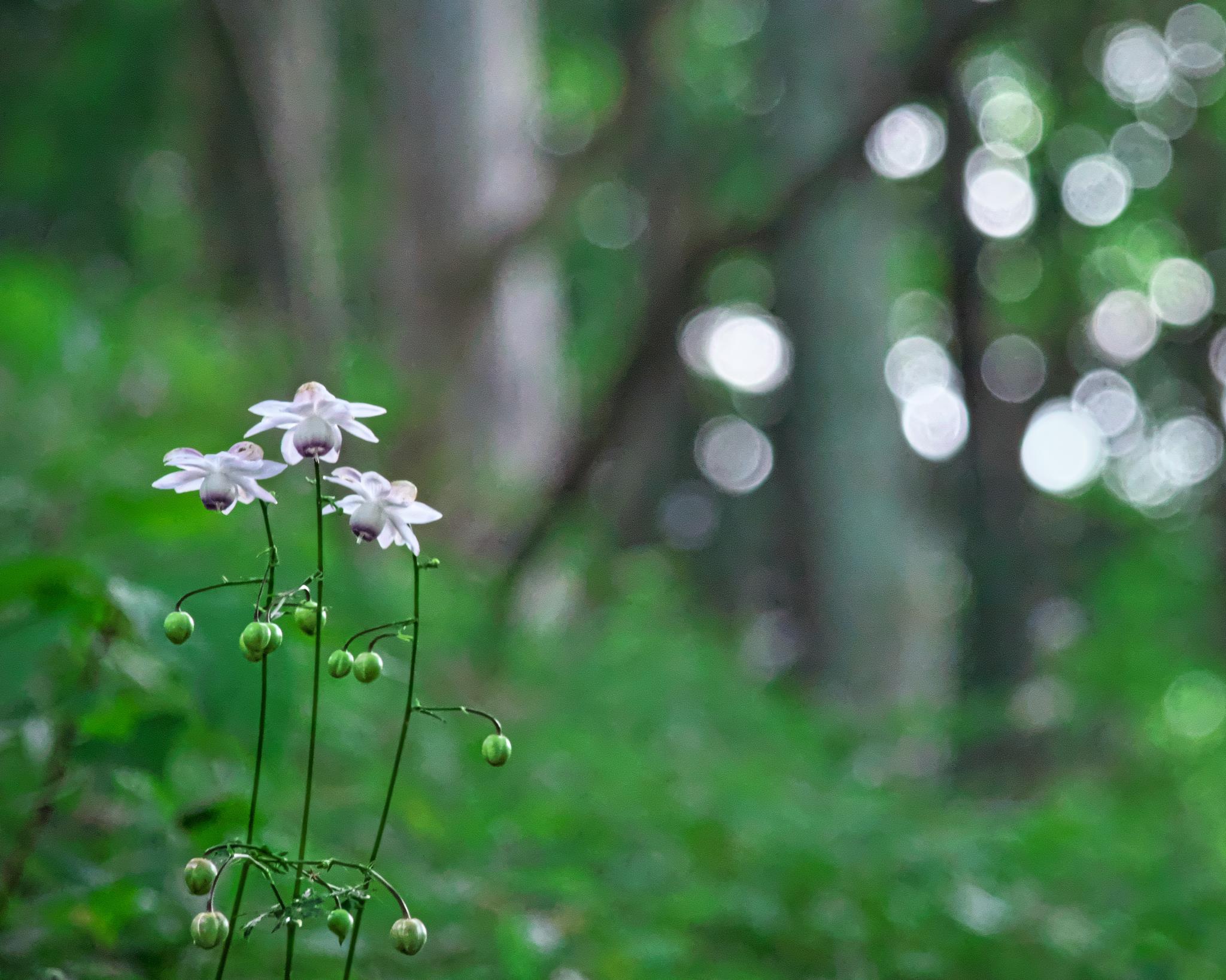左はレンゲショウマ、右に丸ボケを配した画面構成が巧みです。
