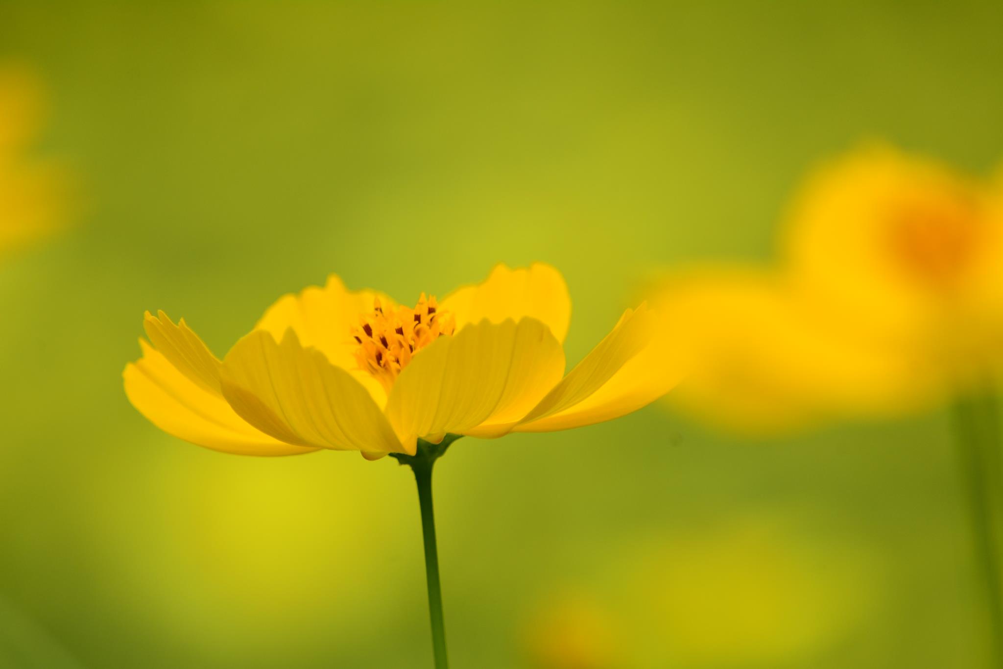 望遠で撮られたキバナコスモス、優しい雰囲気が良いですね。